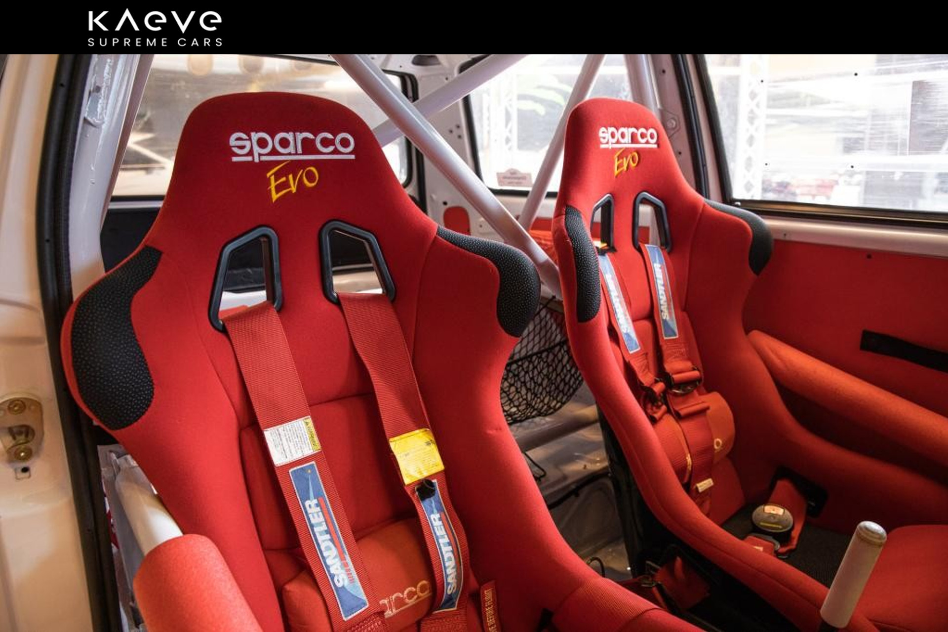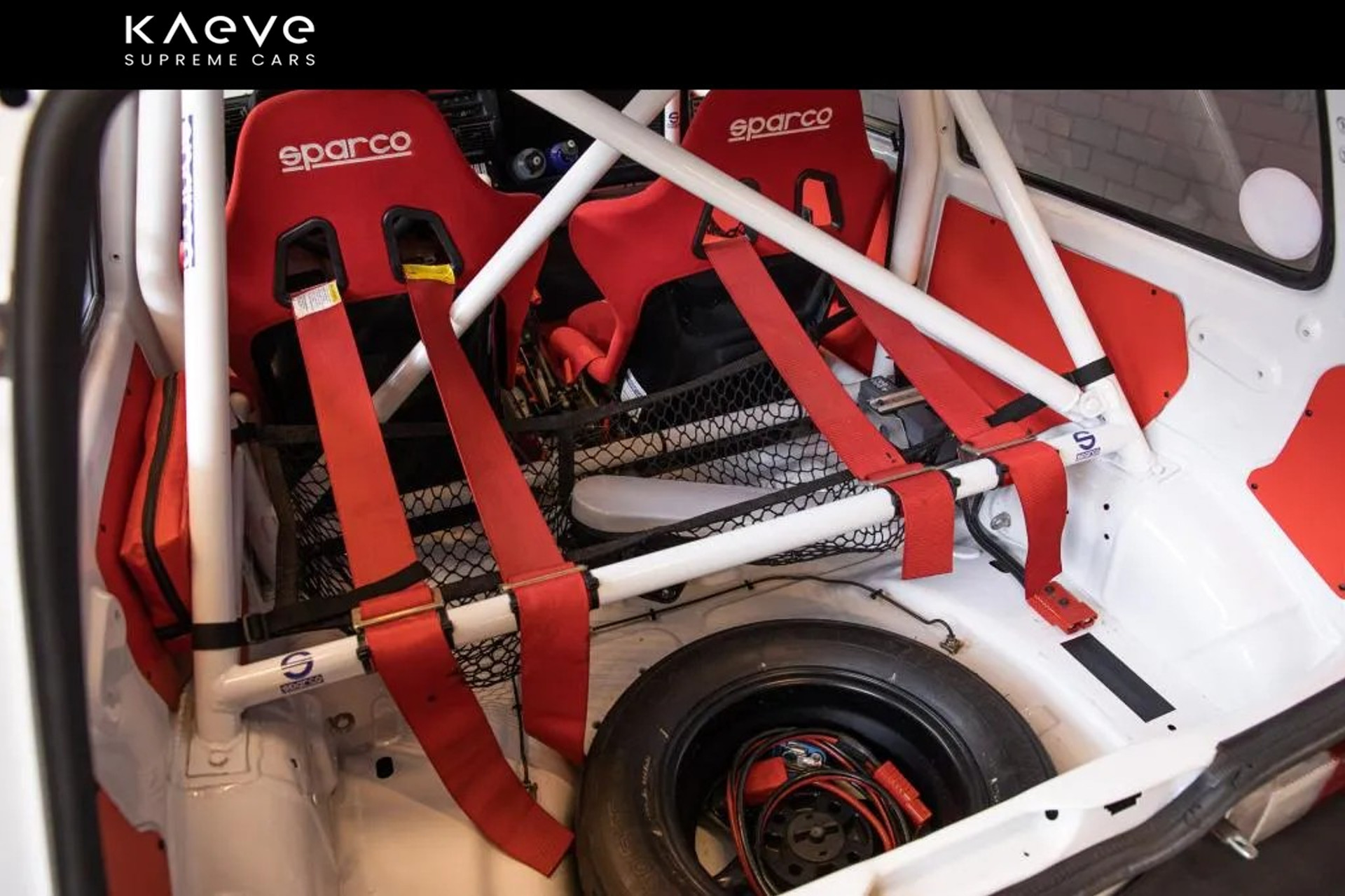 Color: White, with red Sparco racing seats and harnesses