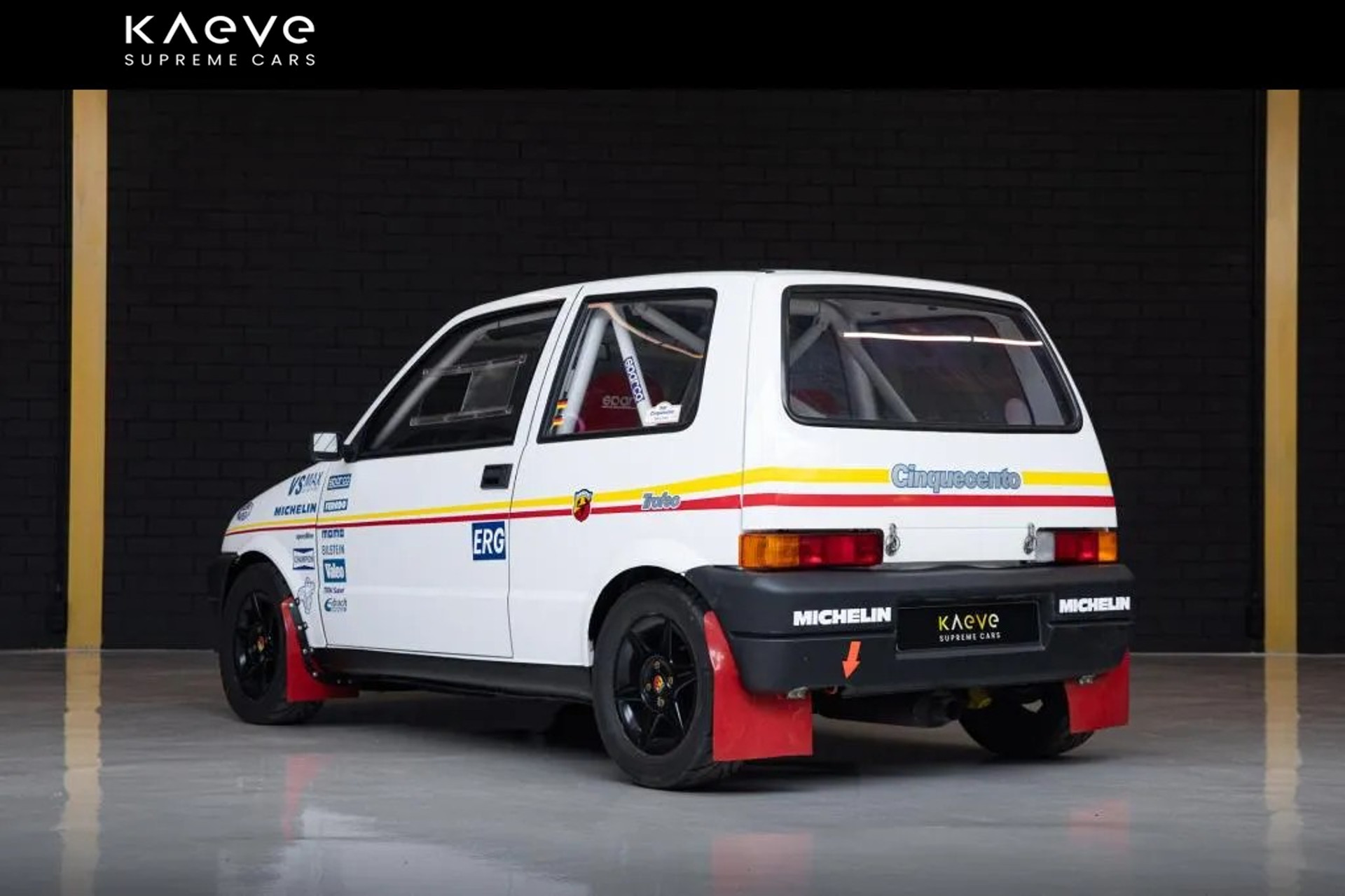 Mit einem Gewicht von nur 790 kg und 96 PS ist dieser Cinquecento eine leichte Rallye-Rakete. Der kompromisslose 1.1 Umbau und die verfeinerten Rennsportteile machen dies zu einer einzigartigen Gelegenheit für Rallye- und Fiat-Liebhaber.