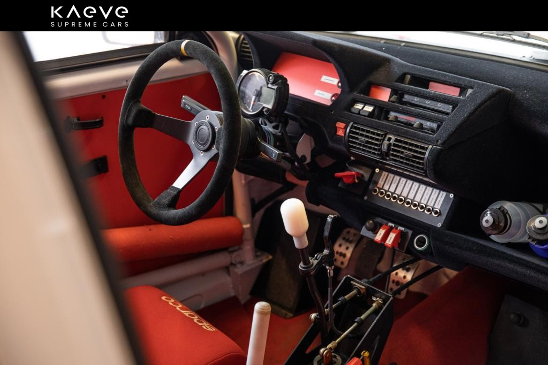• Race-interieur met Sparco-stoelen, rolkooi en schakelaars voor elke elektrische functie.