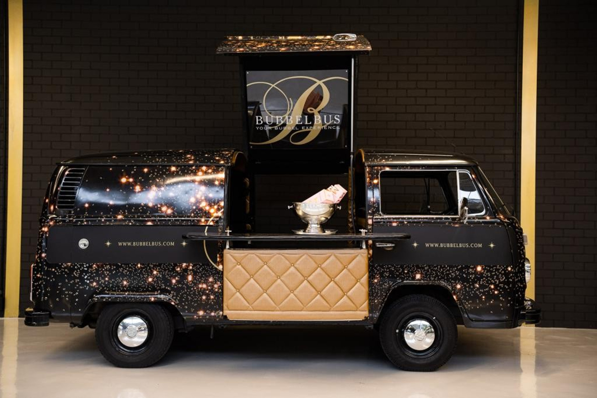 In 2002, the founder of the Bubbelbus saw an old van serving as a cocktail bar on Khao San Road, the most famous entertainment area in Bangkok. This gave him the idea of the Bubbelbus: combining his love for champagne with the atmosphere of that cocktail bar in Thailand into an exclusive champagne bar. The Bubbelbus is originally an old hippie van (VW T2 Transporter). The van has been meticulously restored and converted into a hyper-modern, stylish champagne bar.