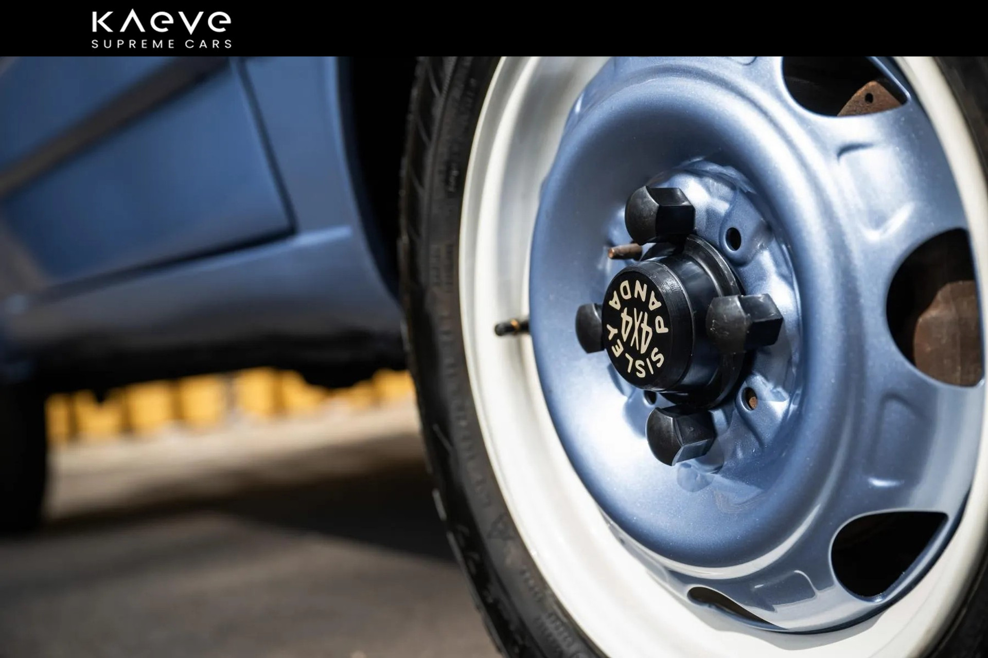 Die Karosserie ist in einem exklusiven Azzurro Blu lackiert – ein mediterranes Blau, das sofort an die Küsten Liguriens erinnert. Alle Kunststoffteile wie Stoßfänger, Spiegelkappen und Zierleisten wurden sorgfältig in Wagenfarbe lackiert. Die Blinker sind klar, die Linien rein – eine neue Eleganz für eine alte Ikone.