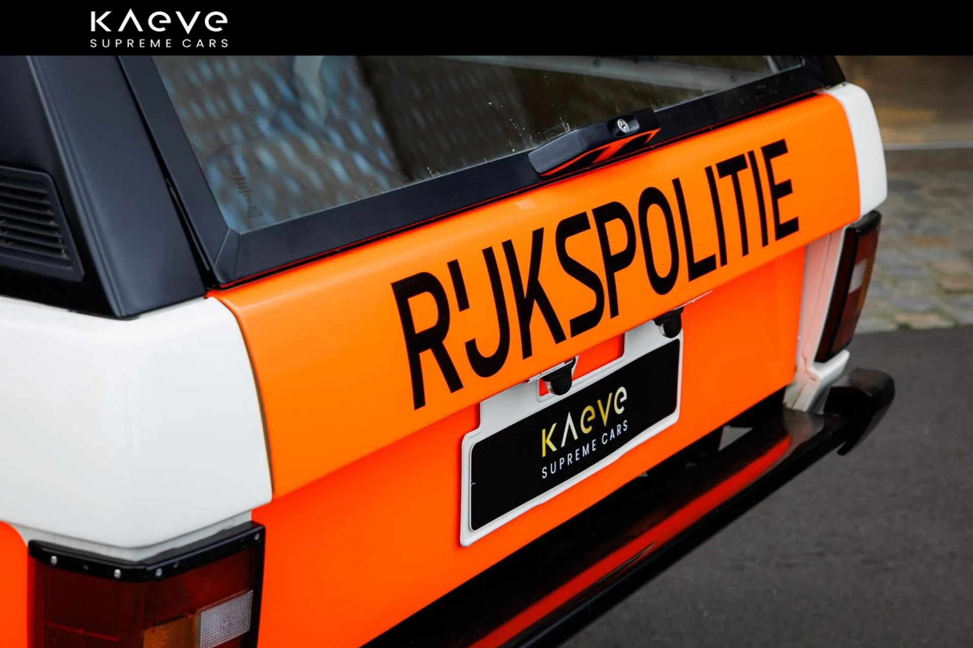 Das markante Erscheinungsbild des Range Rover Classic Coupé, wie das von 1980, diente nicht nur als funktionales Polizeifahrzeug, sondern auch als Symbol der Autorität auf den niederländischen Straßen. Die erkennbare weiße Karosserie mit orangefarbenen Streifen und Blinklichtern machte diese Fahrzeuge leicht zu identifizieren.