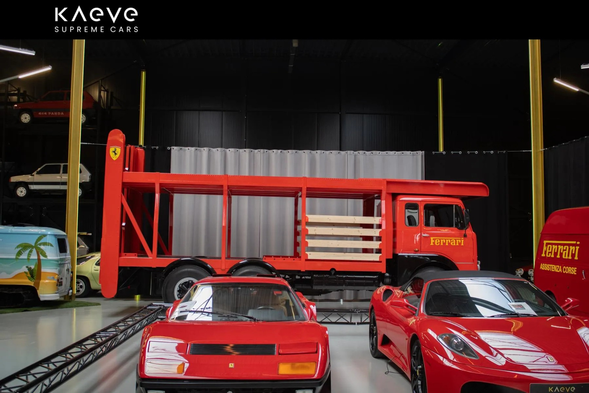 Volledig nieuw opgebouwde Ferrari transporter met laadklep waarmee op twee levels auto's geplaatst kunnen worden. Met unieke opties als nieuwe opbergkisten, handgeschilderde Ferrari schilden en houten frames is dit een prachtige 682N.