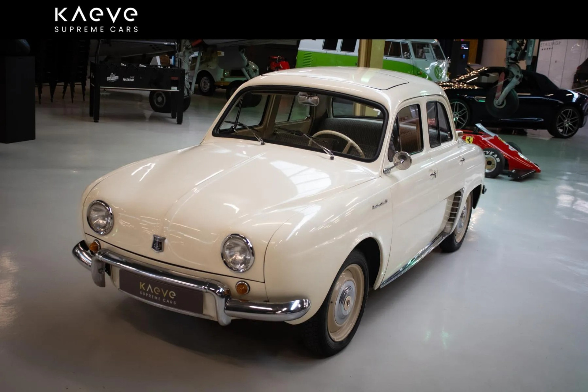 The interior is in good condition and complements the timeless design of the car. The upholstery is well-maintained and the dashboard has a nostalgic look. The Renault Dauphine offers a pleasant driving experience.