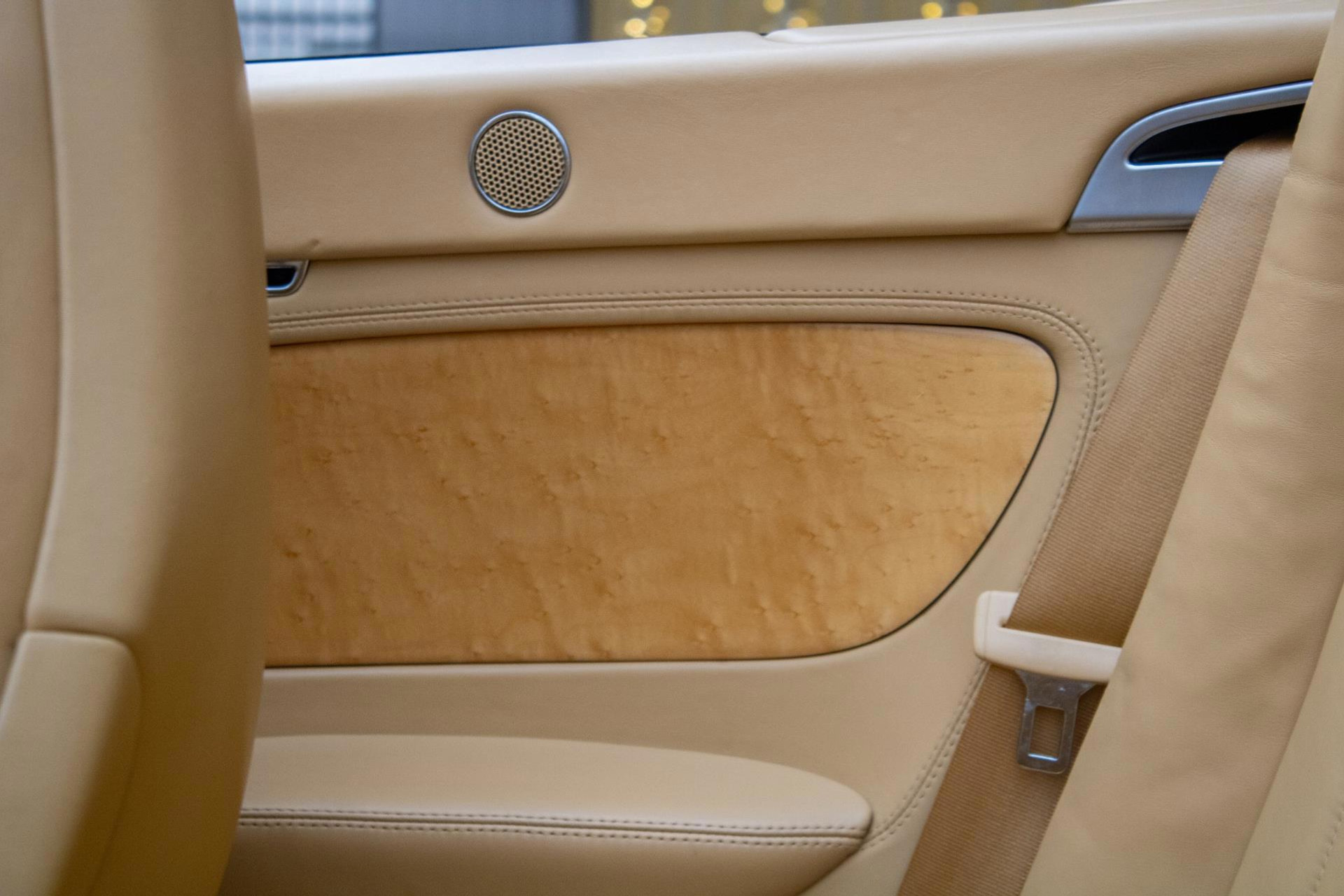 Die Außenfarbe ist in einem stilvollen Silver Tempest Lack gehalten, der perfekt mit dem luxuriösen Safron-Lederinterieur harmoniert. Die elegante Ausführung mit hellen Nussbaumholzdetails unterstreicht das Handwerk, für das Bentley bekannt ist, und hebt die Atmosphäre auf ein unvergleichliches Niveau.