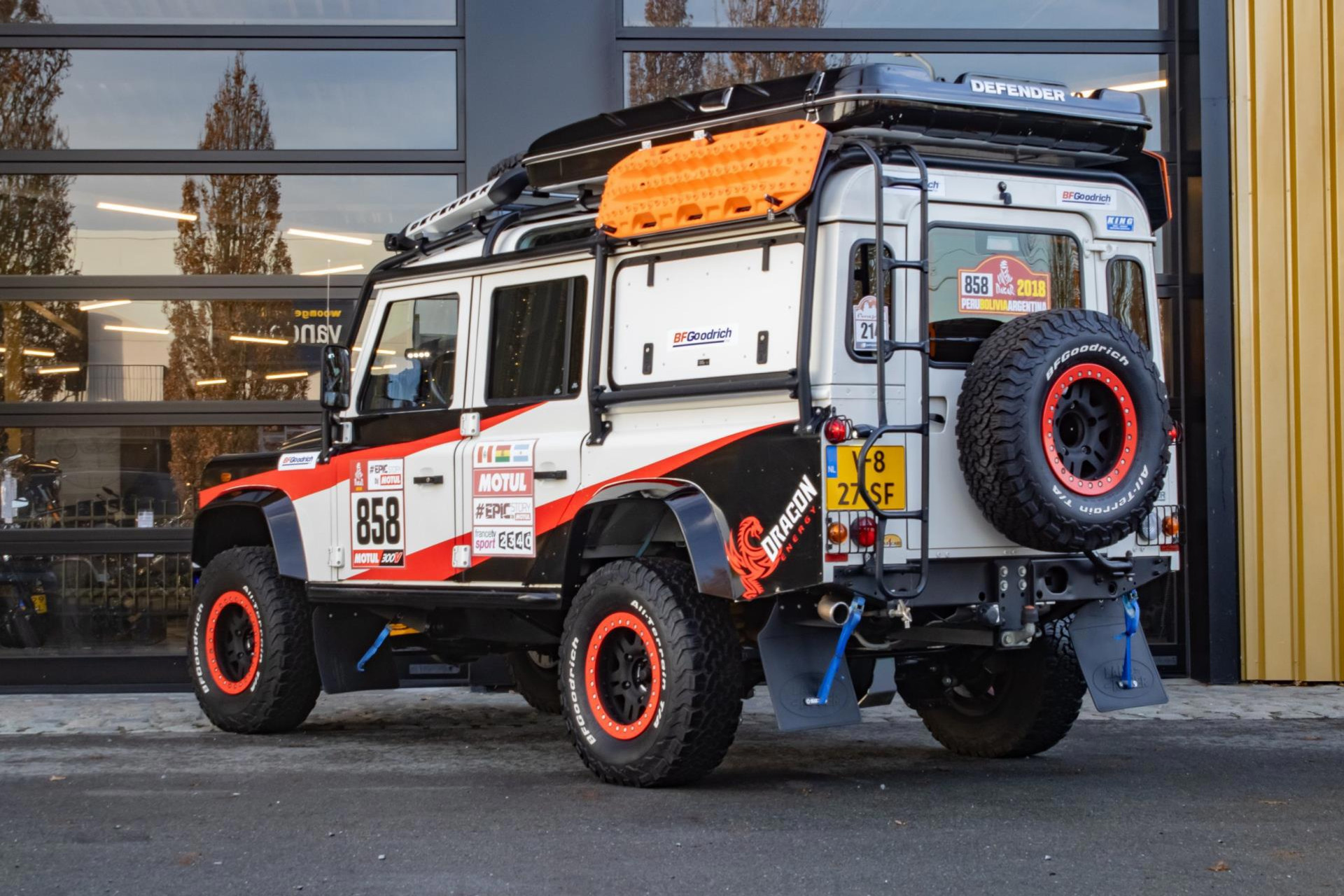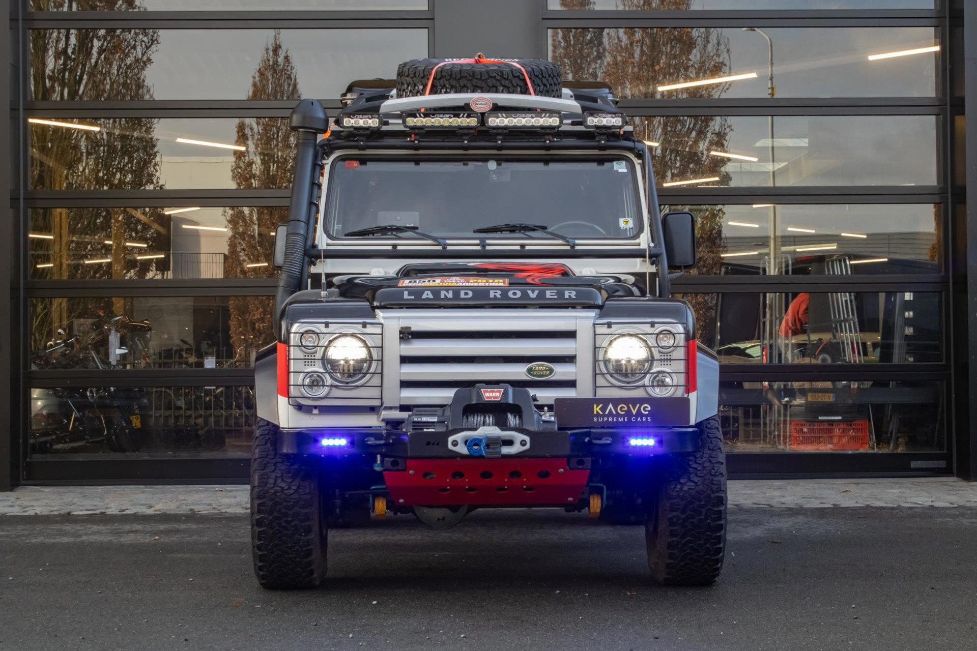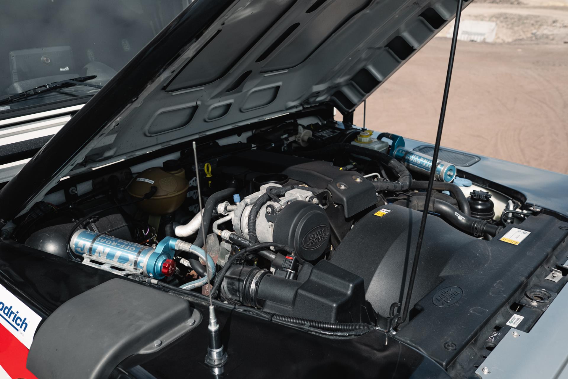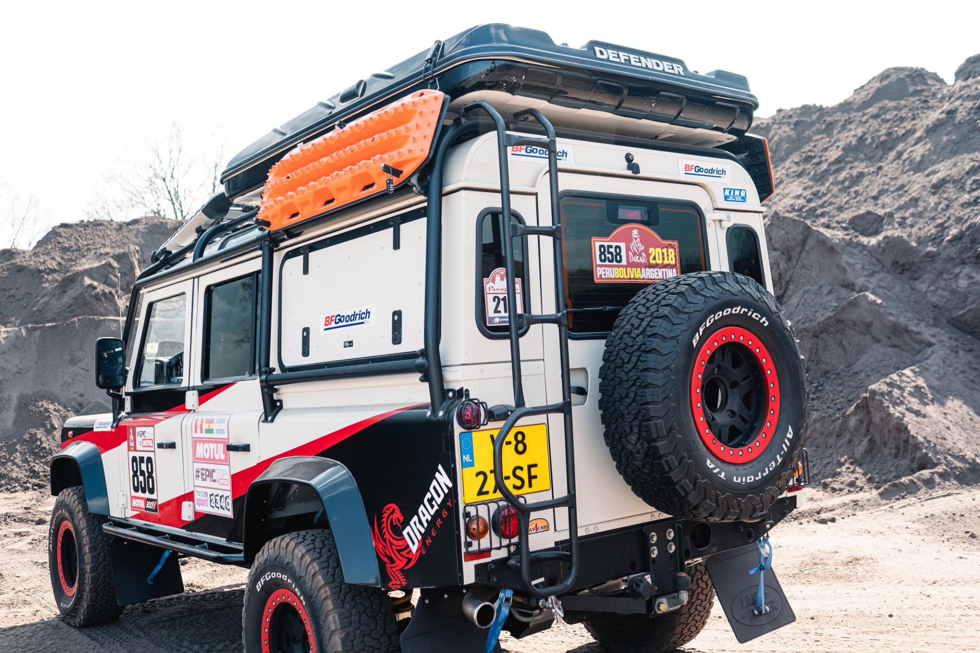 Deze Land Rover Defender is duidelijk een extreem goed geprepareerd voor zowel rallyomstandigheden als gebruik als persauto, met een breed scala aan aanpassingen aan zowel de buitenkant als de binnenkant. Er is voor in totaal €85.000 aan aanpassingen gedaan en hiervan zijn alle facturen en documenten aanwezig. In 2018 heeft de auto meegereden aan de Dakar. Hier is een overzicht van de gedetailleerde aanpassingen die zijn gedaan: