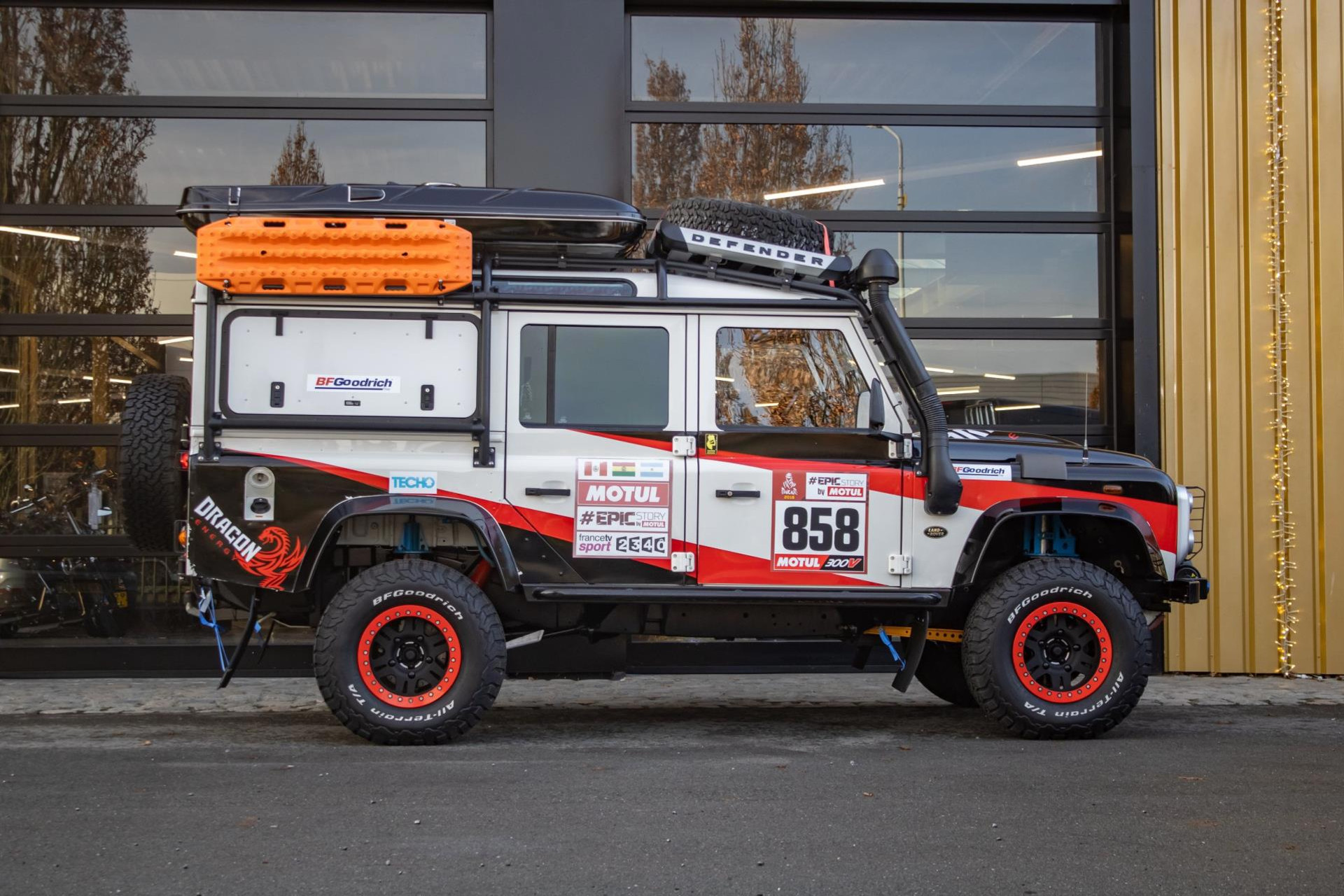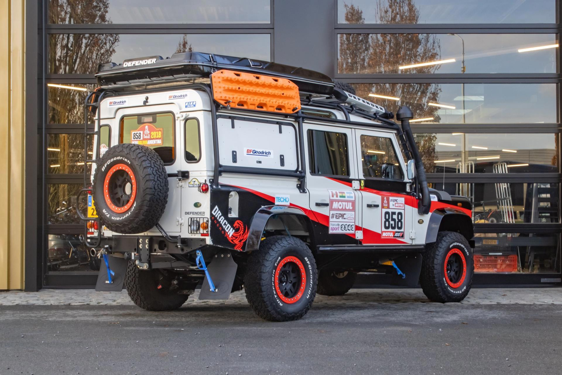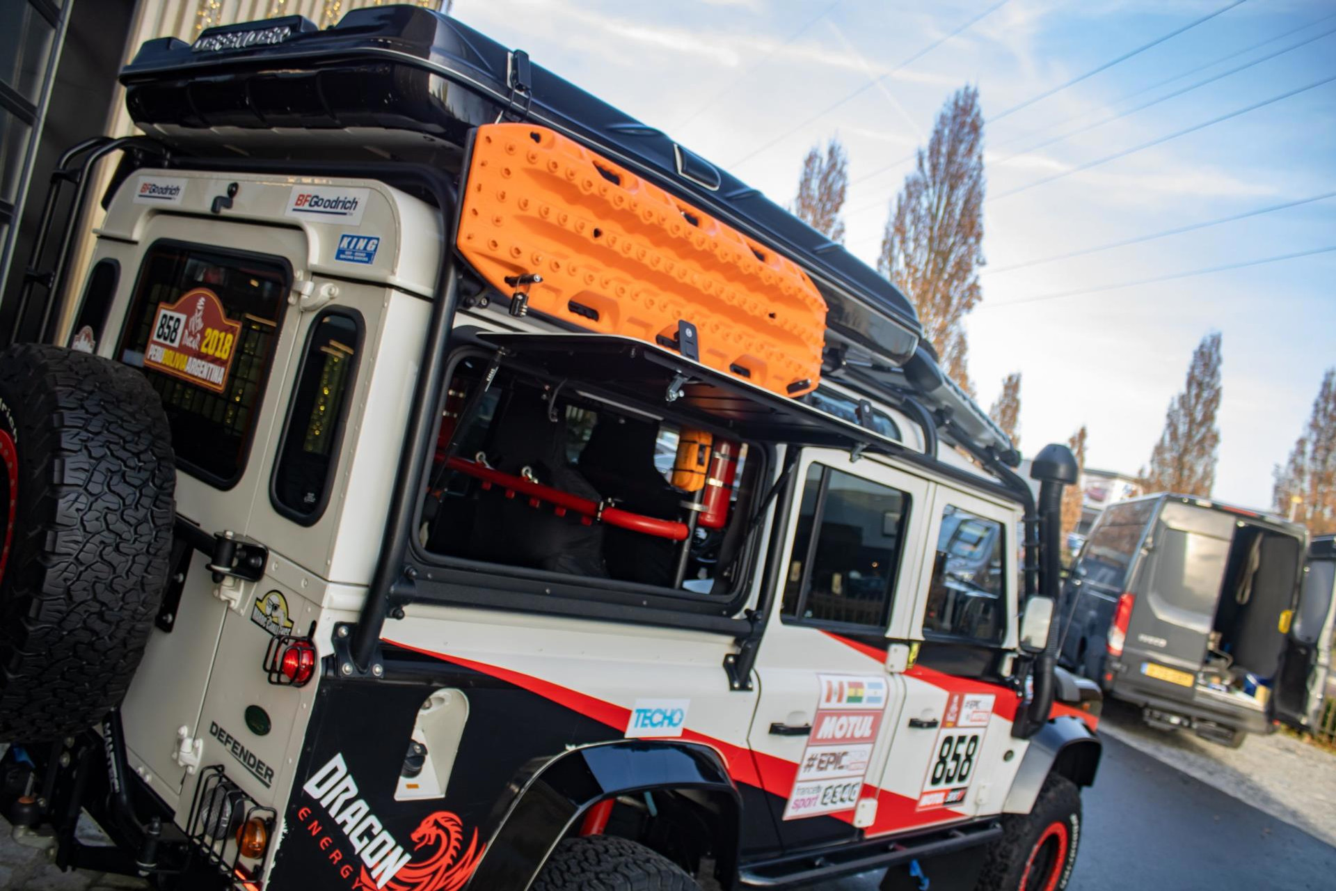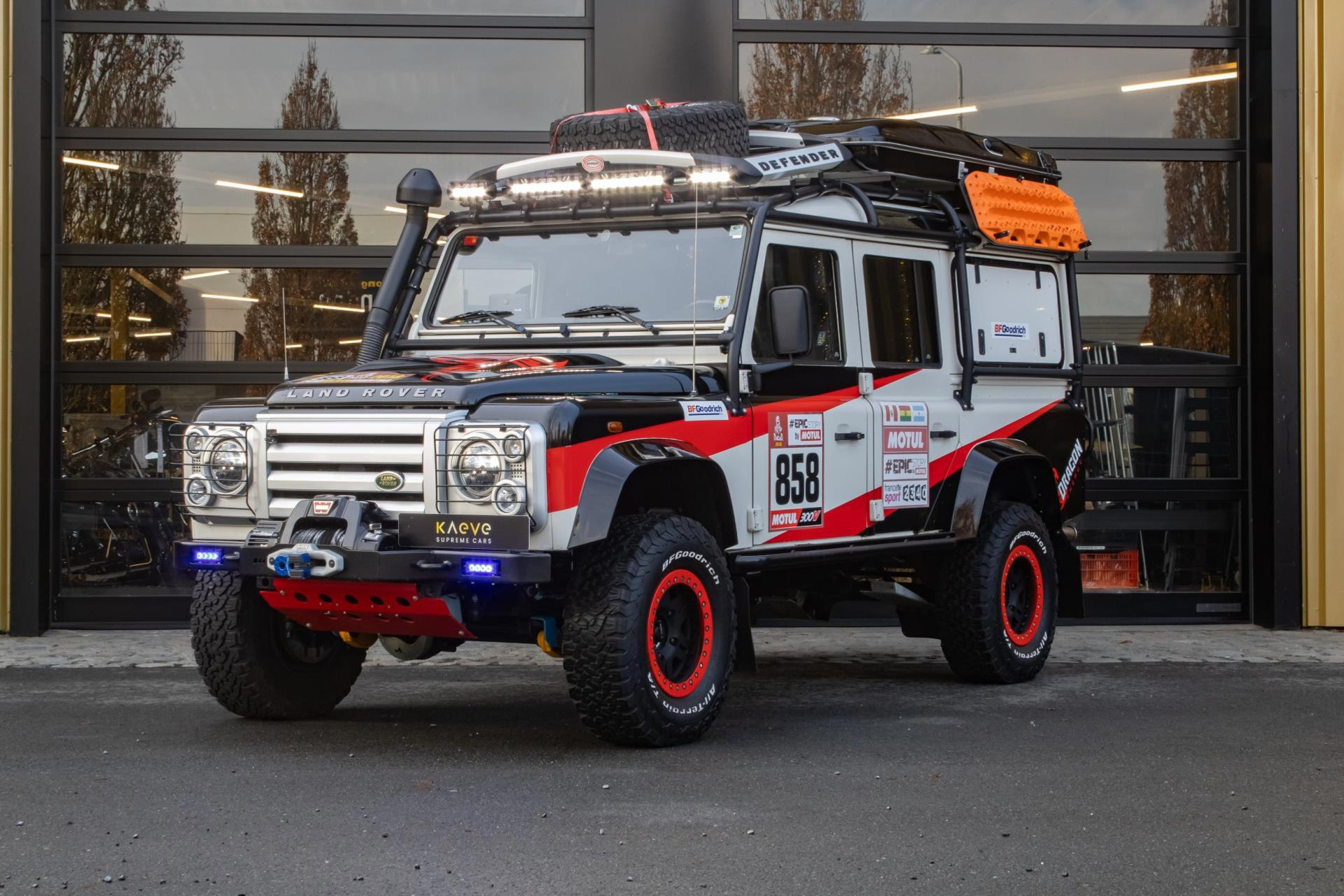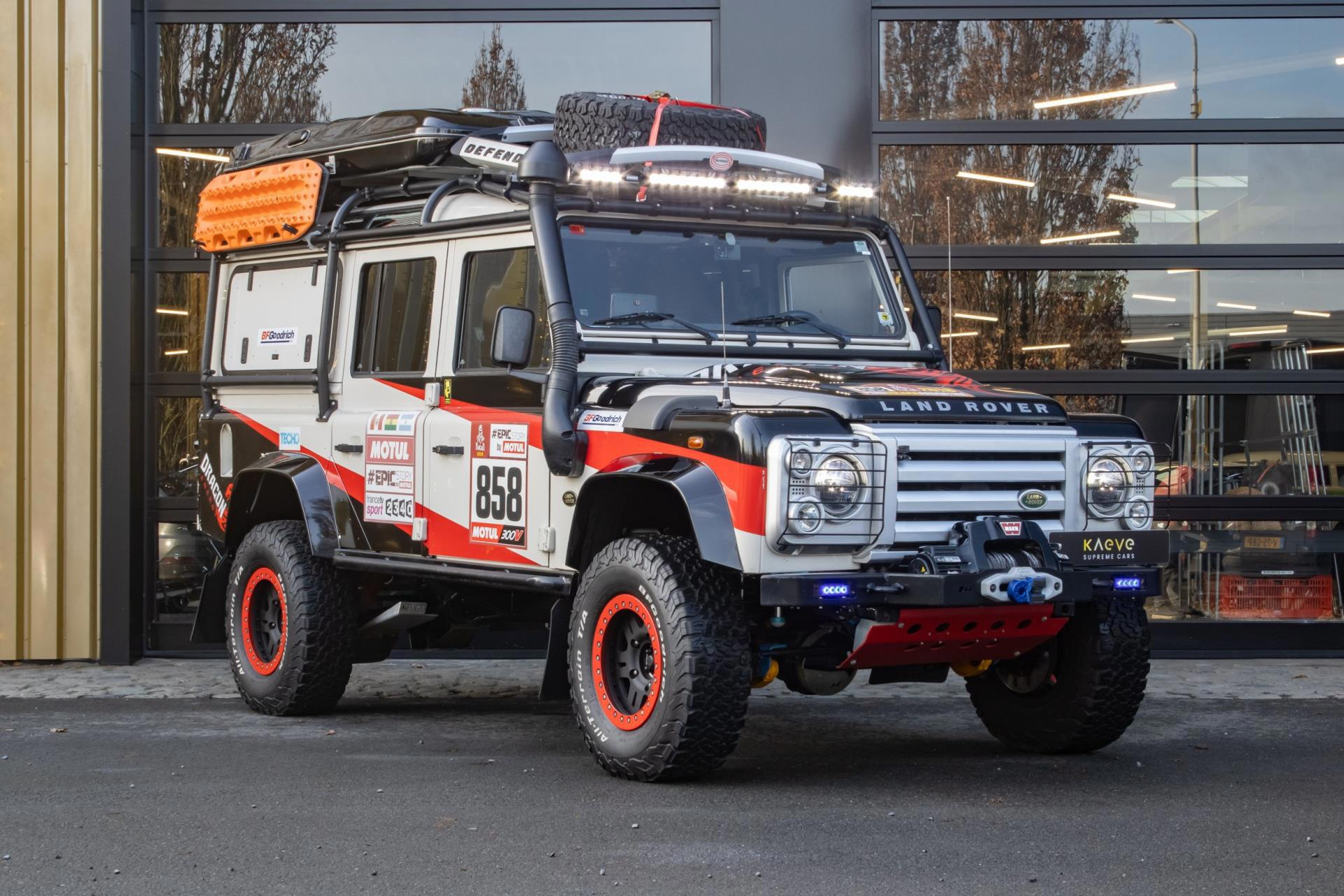 Deze Land Rover Defender is duidelijk een extreem goed geprepareerd voor zowel rallyomstandigheden als gebruik als persauto, met een breed scala aan aanpassingen aan zowel de buitenkant als de binnenkant. Er is voor in totaal €85.000 aan aanpassingen gedaan en hiervan zijn alle facturen en documenten aanwezig. In 2018 heeft de auto meegereden aan de Dakar. Hier is een overzicht van de gedetailleerde aanpassingen die zijn gedaan: