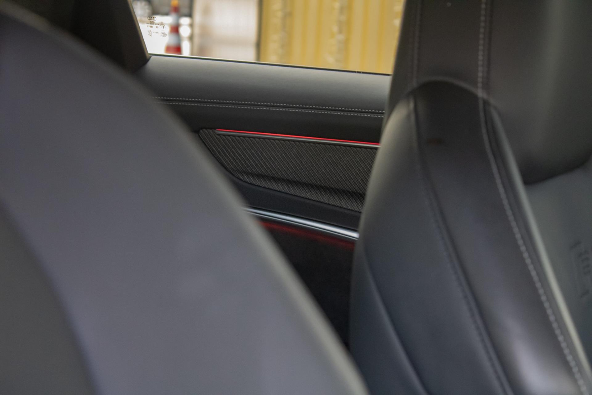 De staat van zowel interieur als exterieur is subliem. Het alcantara stuurwiel voelt nog als nieuw, net als de instapwangen van de stoelen. Niets is beschadigd of uitgeleefd; alles straalt zorg en aandacht uit, precies zoals je van een origineel en goed onderhouden exemplaar mag verwachten. Het interieur is volledig in zwart uitgevoerd met RS-sportstoelen in leder en alcantara, elektrisch verstelbaar met geheugenfunctie, stoelverwarming en -koeling. Alcantara op stuurwiel en dakhemel versterkt de sportieve sfeer. Comfortopties zoals een panoramadak, Head-Up Display, 360° camera, soft-close deuren en standkachel maken de auto compleet, terwijl het Moving Intelligence GPS-alarm en Target Blu Eye-systeem extra veiligheid bieden.