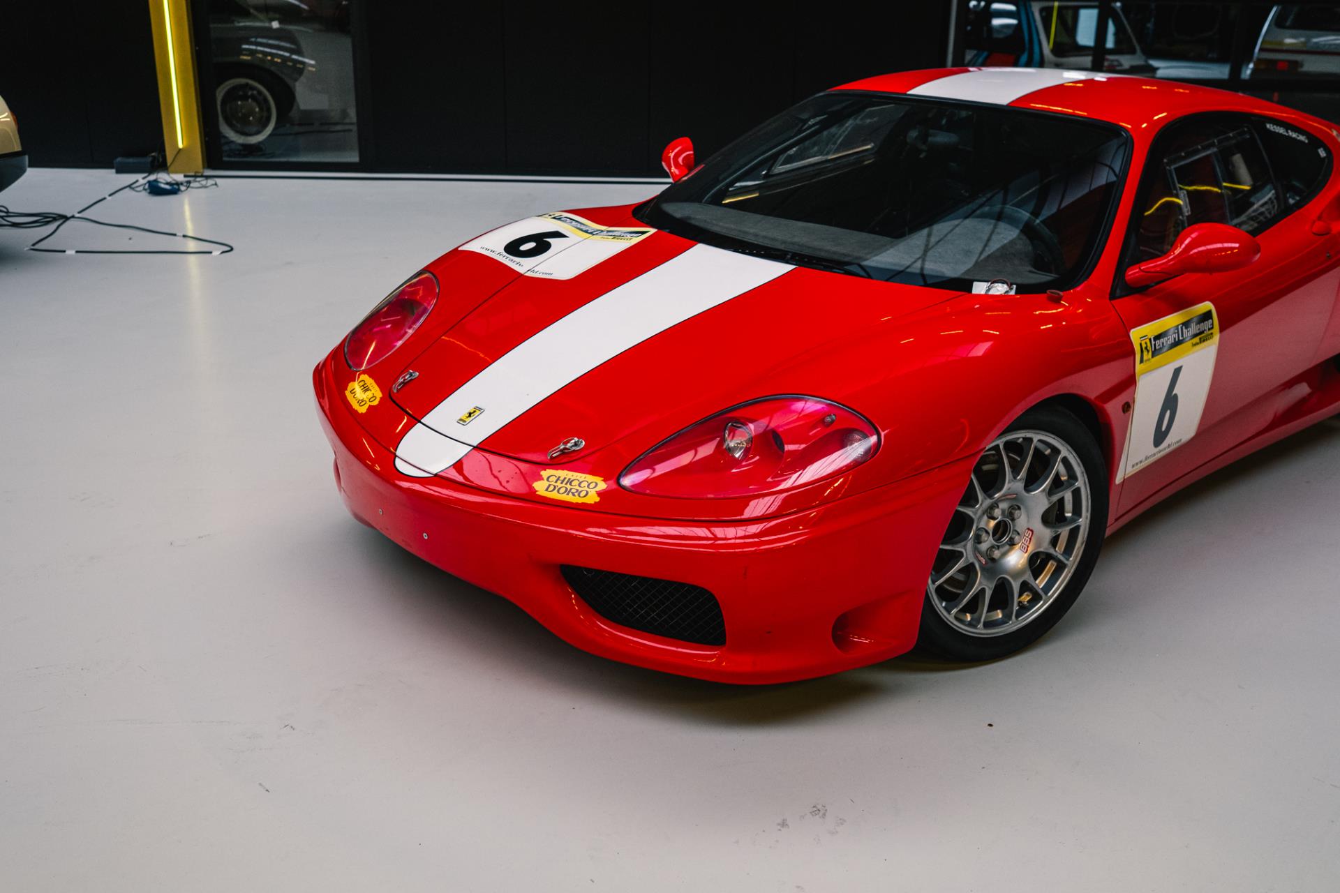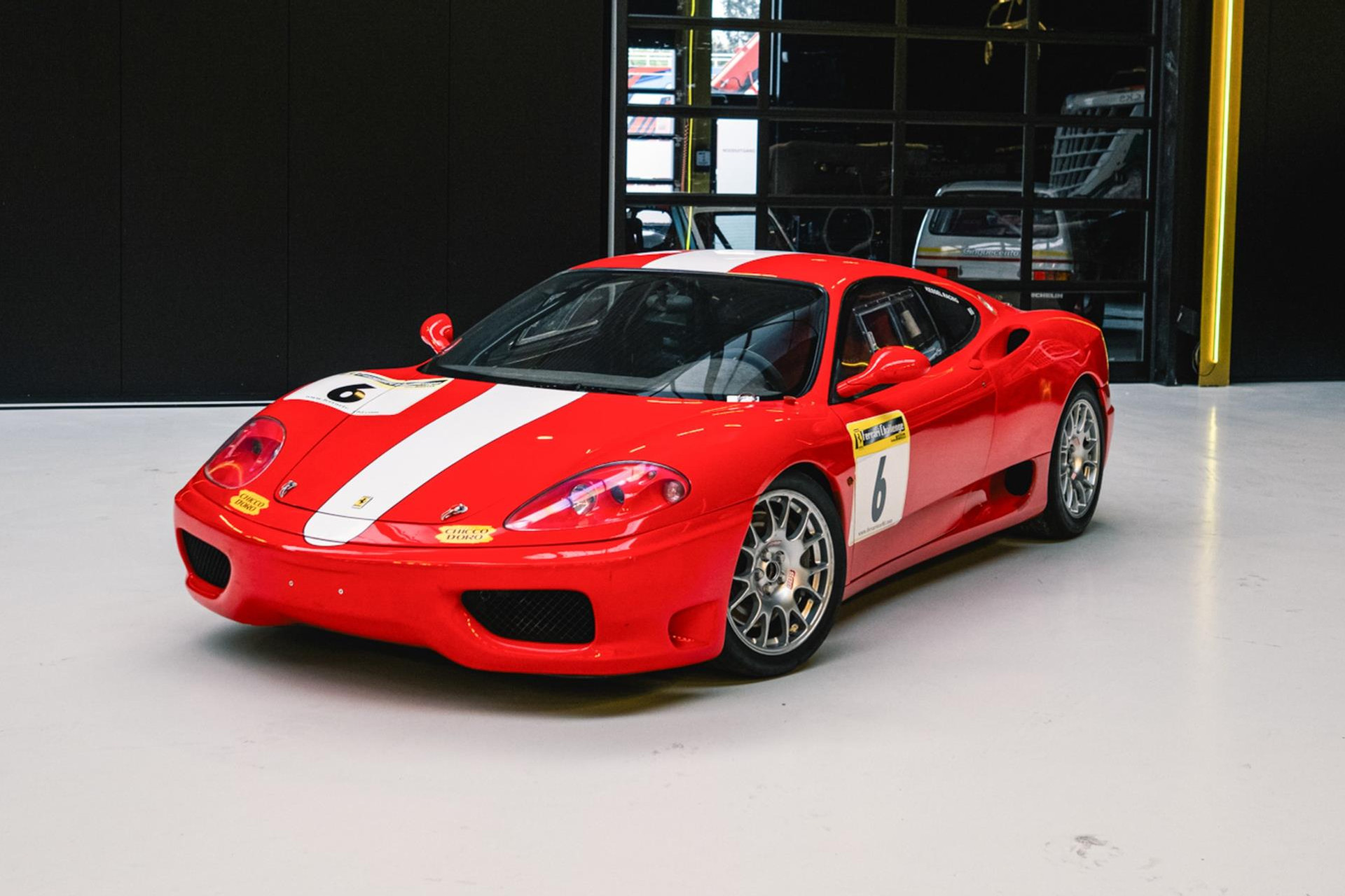 The Ferrari 360 Challenge is a race car based on the 360 Modena, developed specifically for Ferrari's single-make racing class, the Ferrari Challenge. The model was produced between 1999 and 2005 and was intended exclusively for track use. The car came with an F1 electro-hydraulic transmission and had a power output of around 400 hp, allowing it to accelerate from 0 to 100 km/h in 3.9 seconds .