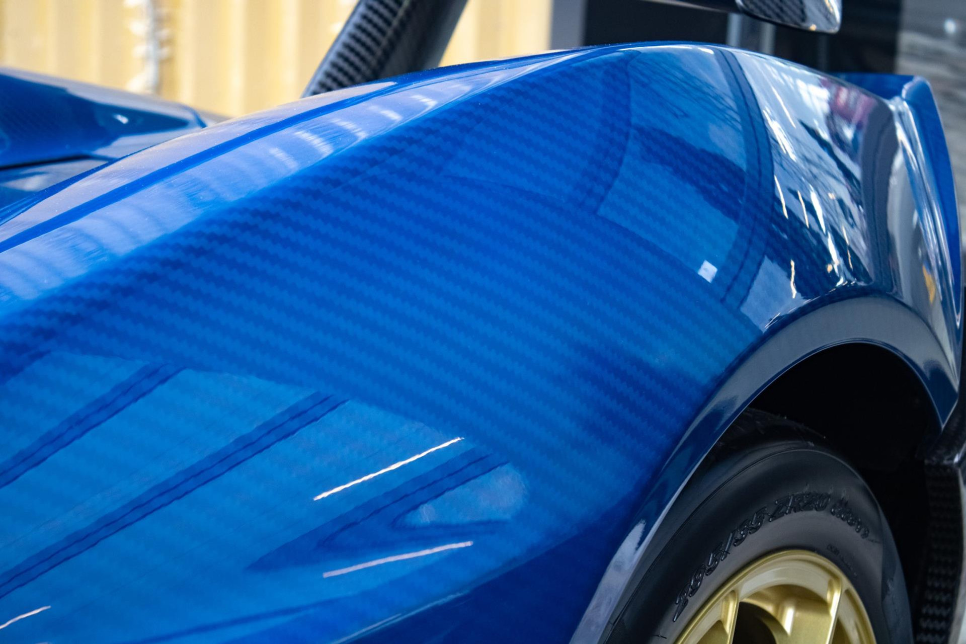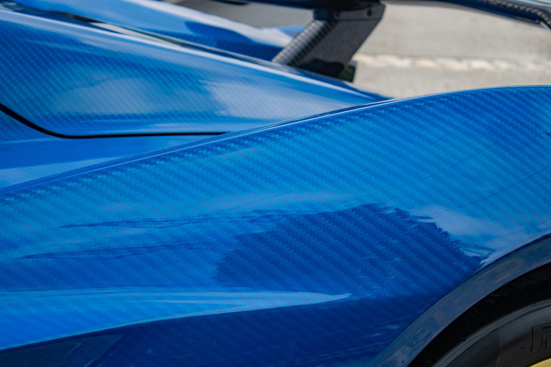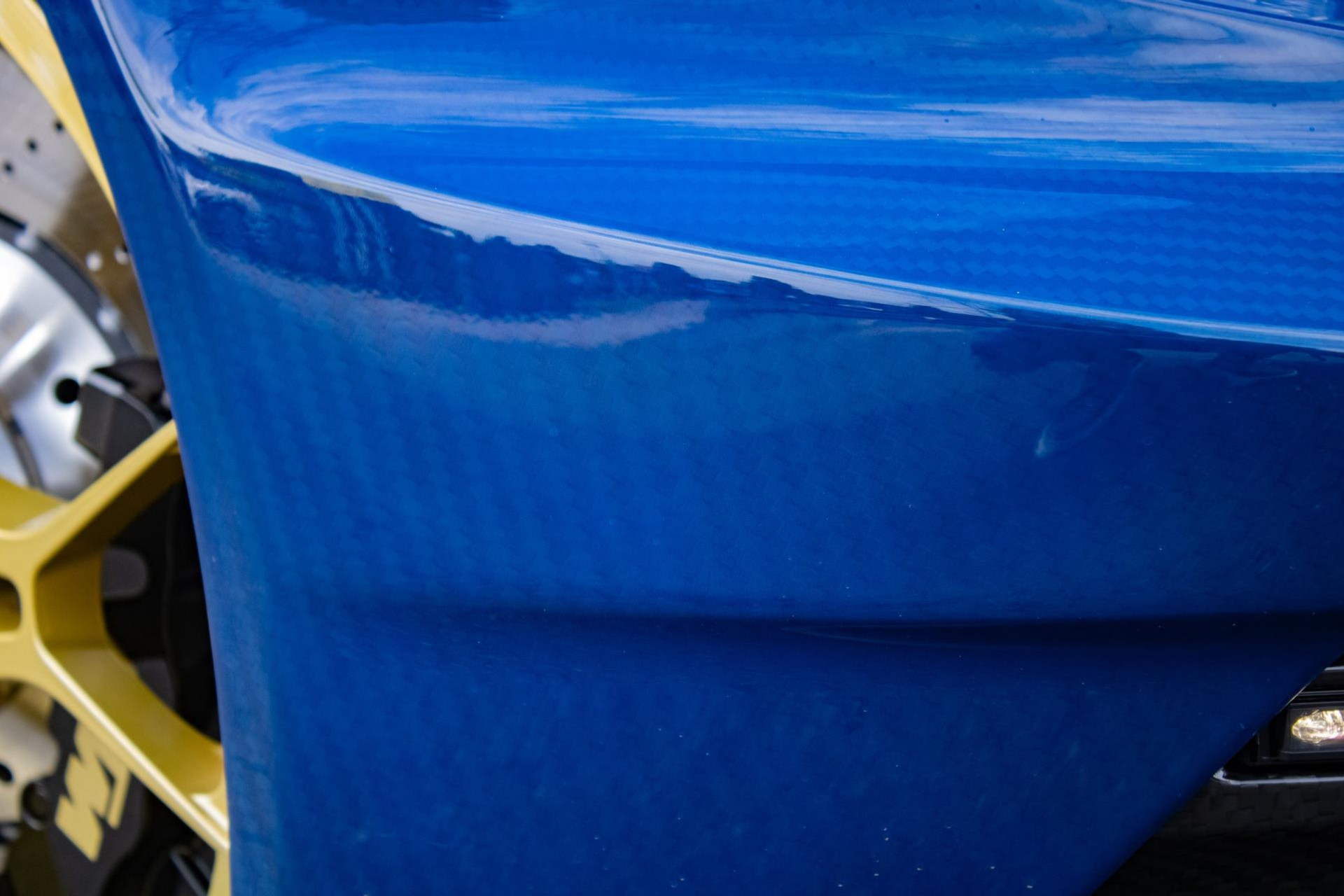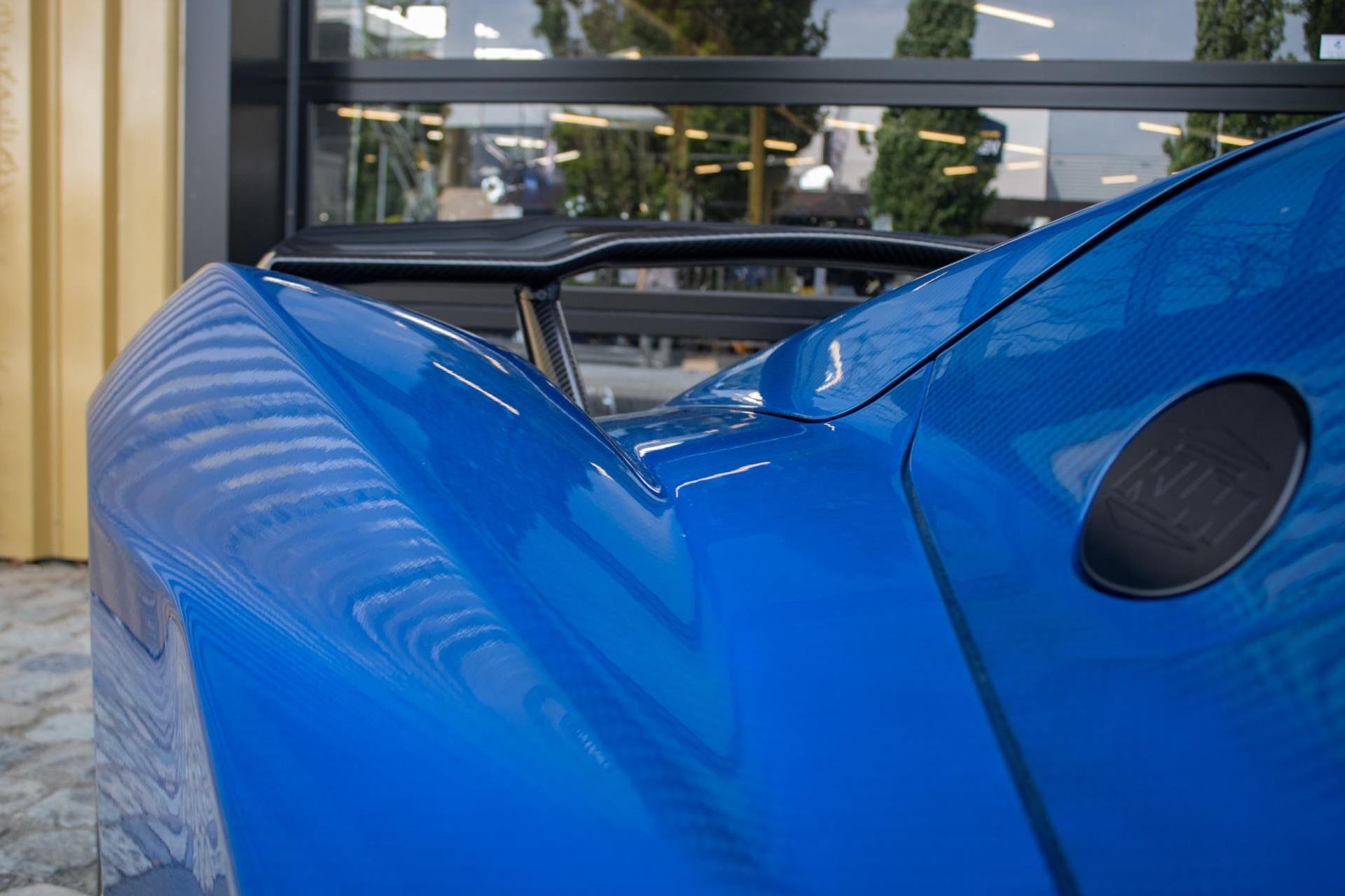 Een unieke en nieuwe KTM X-BOW GT-XR, nummer 47 van slechts 100 wereldwijd geproduceerde exemplaren. Deze straatlegale hypercar is uitgevoerd in een exclusieve, eenmalig geproduceerde lak genaamd Colored Carbon Spielberg Blue. De lak heeft een lichtdoorlaatbaarheid van 30,47%, waardoor de volledige carbon body zichtbaar blijft onder een diepe, metallic blauwe gloed. Deze lakoptie vertegenwoordigt een waarde van €35.000 en is slechts één keer toegepast – dit exemplaar is dus letterlijk uniek: een one-of-one.
