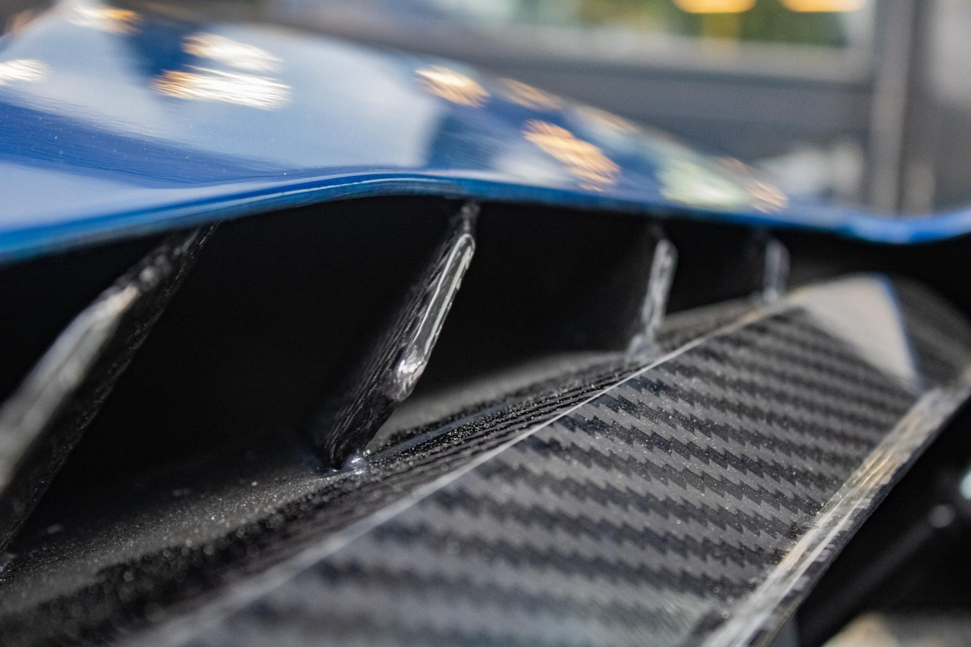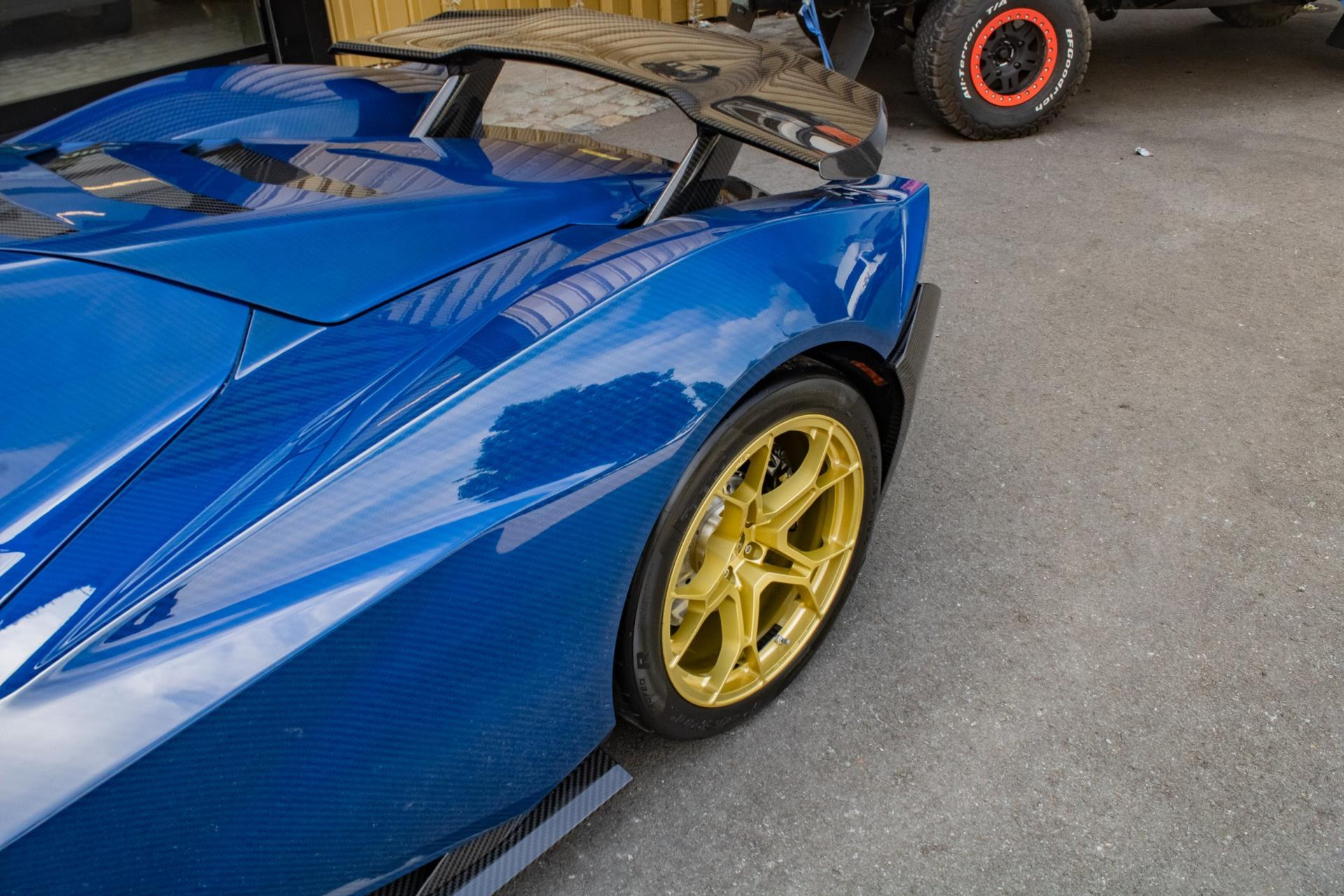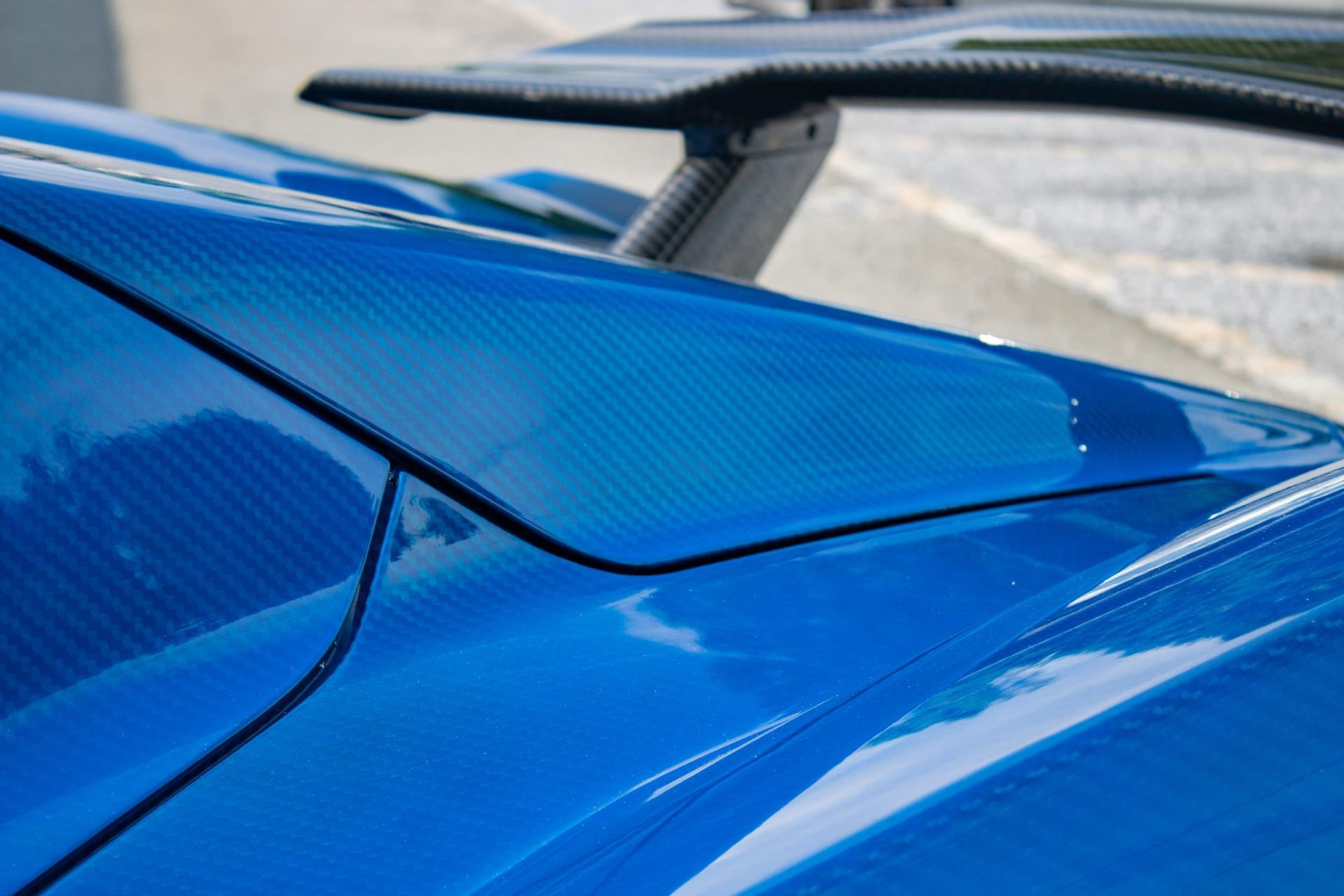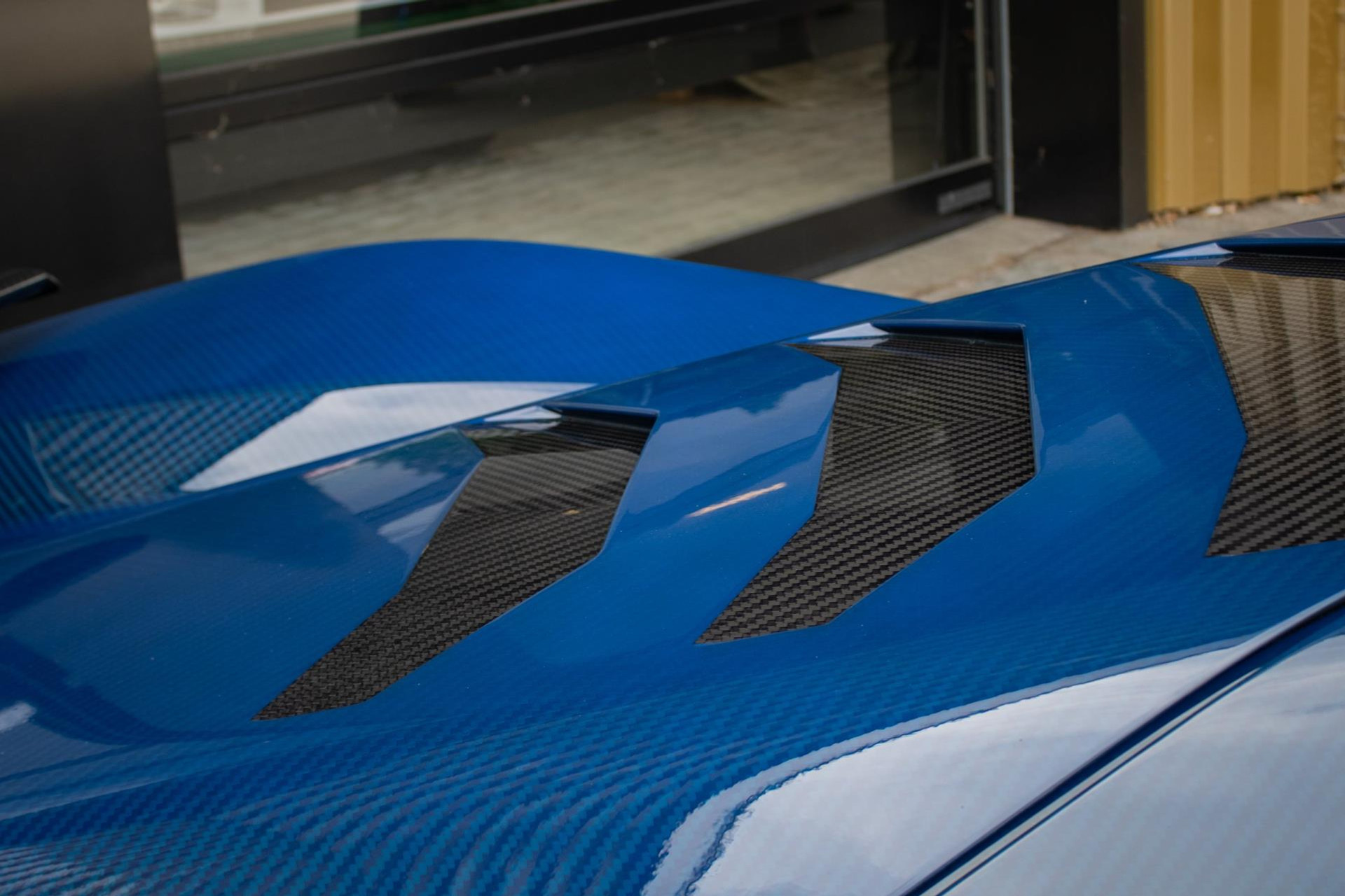 Een unieke en nieuwe KTM X-BOW GT-XR, nummer 47 van slechts 100 wereldwijd geproduceerde exemplaren. Deze straatlegale hypercar is uitgevoerd in een exclusieve, eenmalig geproduceerde lak genaamd Colored Carbon Spielberg Blue. De lak heeft een lichtdoorlaatbaarheid van 30,47%, waardoor de volledige carbon body zichtbaar blijft onder een diepe, metallic blauwe gloed. Deze lakoptie vertegenwoordigt een waarde van €35.000 en is slechts één keer toegepast – dit exemplaar is dus letterlijk uniek: een one-of-one.