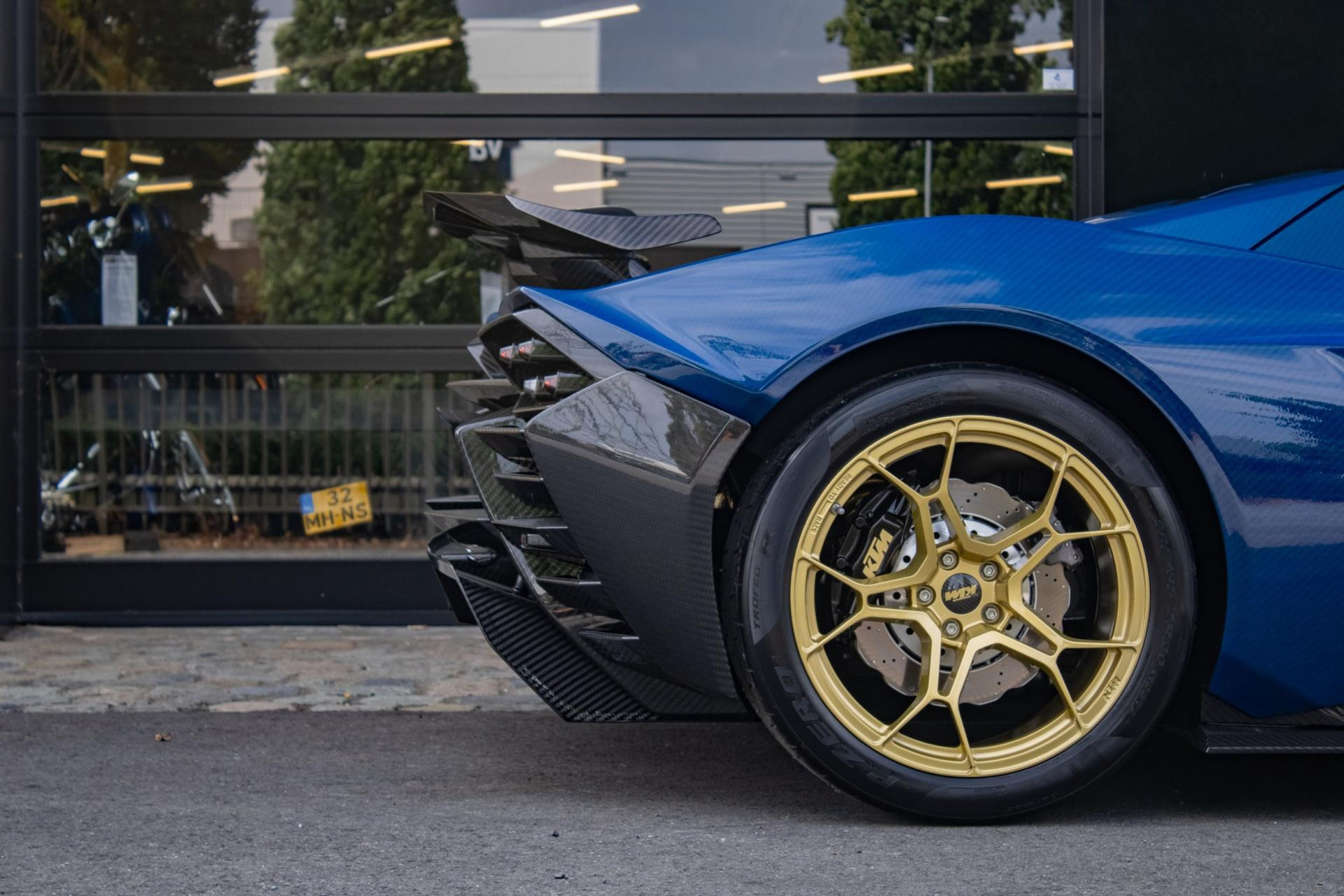 Dit exemplaar heeft slechts 27 testkilometers op de teller en verkeert in absolute nieuwstaat. De auto is bovendien tot in de details gepersonaliseerd met exclusieve goudkleurige accenten: zo zijn de velgen uitgevoerd in Gold Gloss, inclusief de KTM-logo’s op de wheelhub covers. Ook de remklauwen zijn uitgevoerd in RAL 9005 zwart met gouden logo’s. Verder zijn de vering, emblemen (binnen en buiten), stoelstiksels, sleepoog en de ‘100 Limited Edition’ badge allemaal afgewerkt in goud. De GT-XR staat op Pirelli P ZERO TROFEORACE semi-slicks, gemonteerd op 19 inch voor en 20 inch achter.