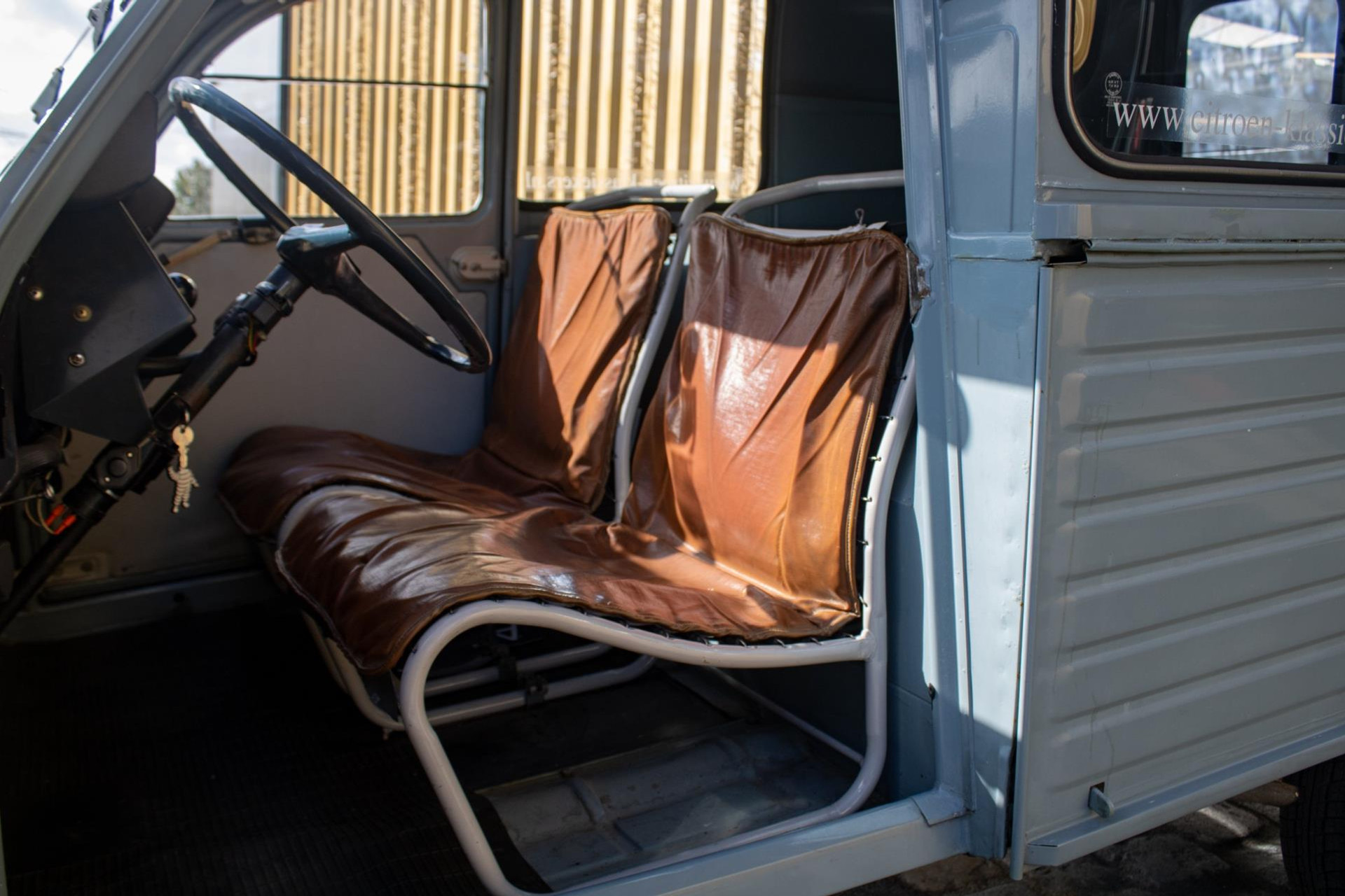 This 2CV began its life in Entraygues (Aveyron), South France, owned by local shopkeeper Jules Serieys, who used it daily to deliver gas bottles and carry a ladder on the roof rack to pick apples from his orchard. After his passing, the van was brought to the Netherlands by the current owner, who has cherished it for 26 years. Shortly after acquisition, it underwent a thorough restoration by the renowned Château Deux Chevaux in Beesd.