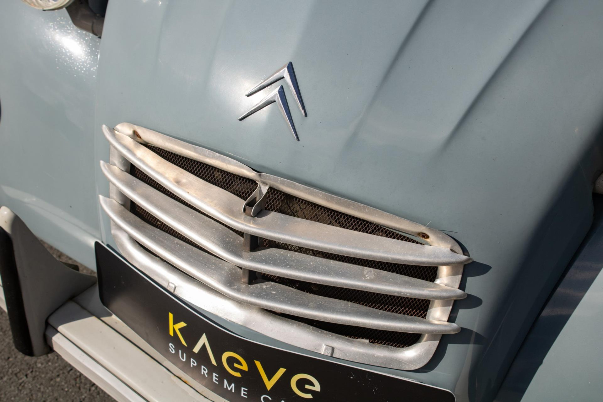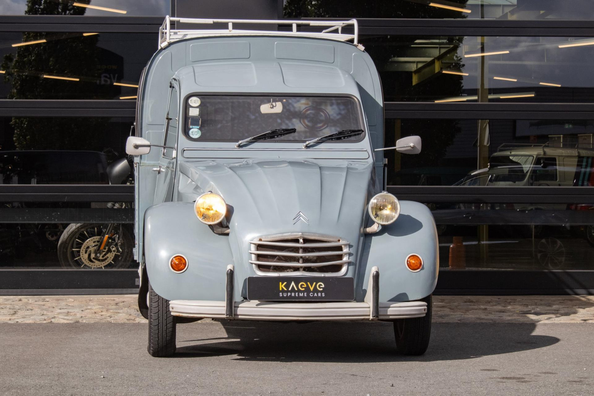 Deze 2CV begon zijn leven in het Zuid-Franse Entraygues (Aveyron) bij dorpswinkelier Jules Serieys, die er dagelijks Prima Gaz-flessen mee rondbracht en met een ladder op de imperiaal zijn appels plukte. Na zijn overlijden kwam de auto in Nederland terecht bij de huidige eigenaar, die hem 26 jaar heeft gekoesterd. Kort na de aankoop werd hij grondig gerestaureerd door het gerenommeerde Château Deux Chevaux in Beesd.