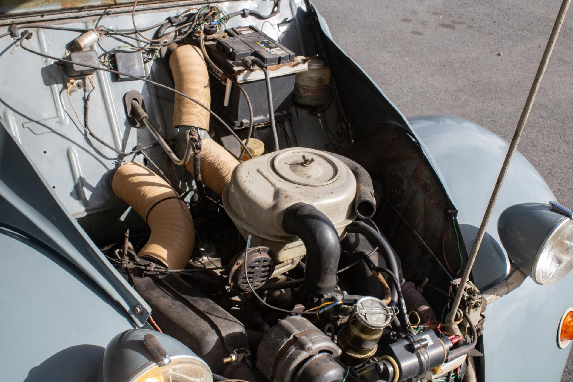 The van is completely original, including its rare roof rack. It runs and drives well and has always been stored indoors, used only in good weather for leisure drives or practical errands such as picking up Christmas trees or straw. Please see the photos for the current condition.