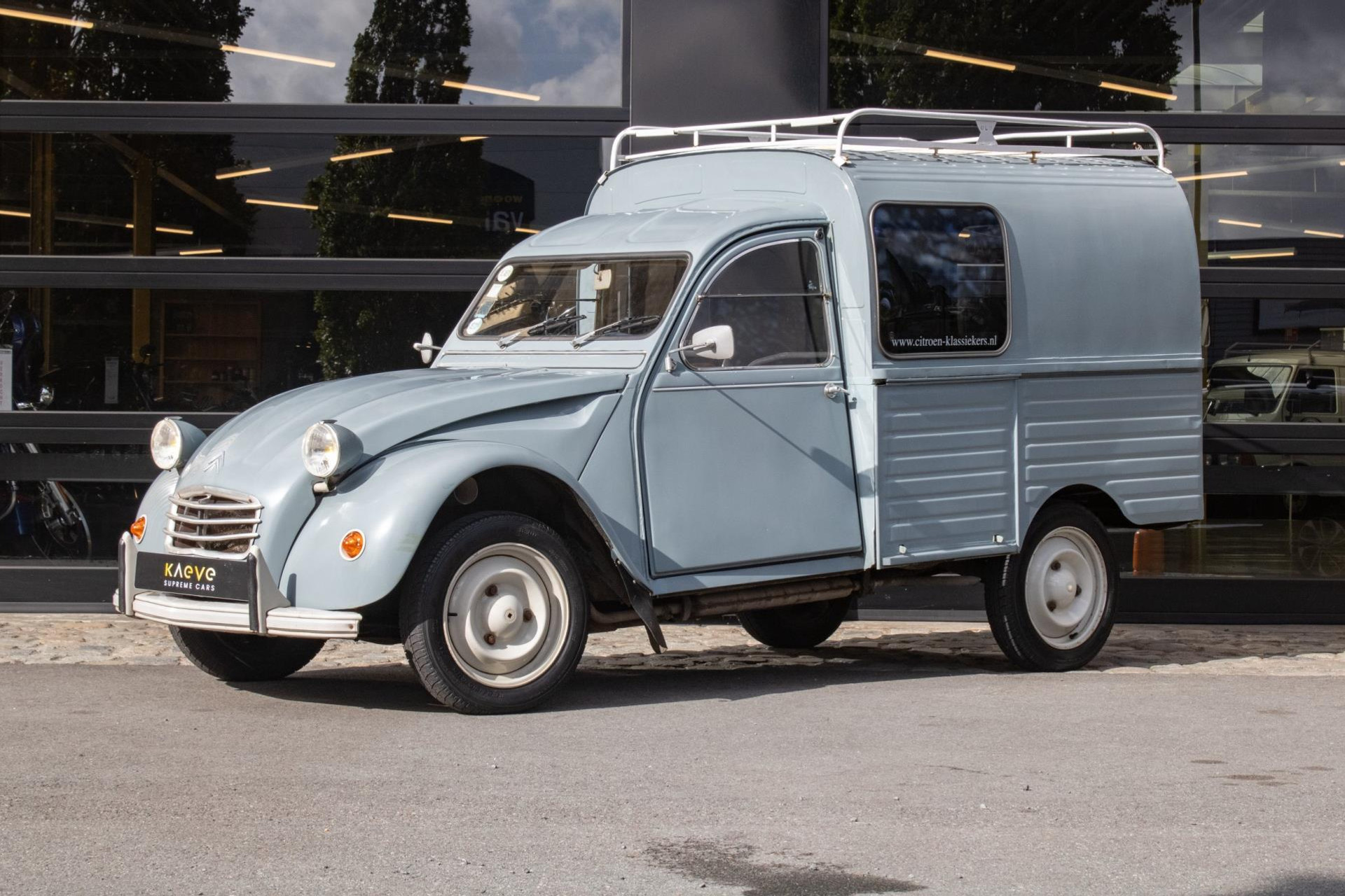 Cette 2CV a débuté sa vie à Entraygues (Aveyron), Sud de la France, propriété du commerçant local Jules Serieys, qui l’utilisait pour livrer les bouteilles de gaz et transporter une échelle sur le toit pour cueillir des pommes dans son verger. Après son décès, le véhicule a été importé aux Pays-Bas par le propriétaire actuel, qui le possède depuis 26 ans. Peu après son acquisition, il a été soigneusement restauré par le réputé Château Deux Chevaux à Beesd.