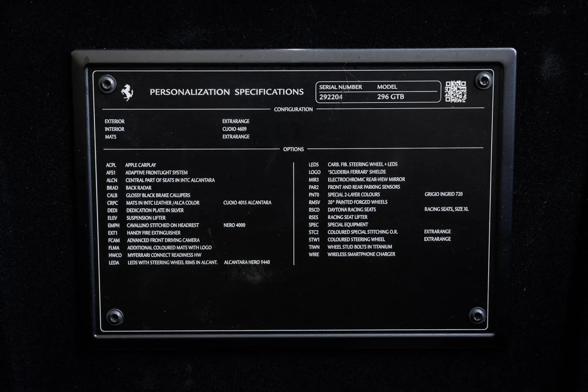 This 296 GTB is finished in the sophisticated colour Grigio Ingrid, paired with Daytona Racing Seats in Cuoio Alcantara (size XL).