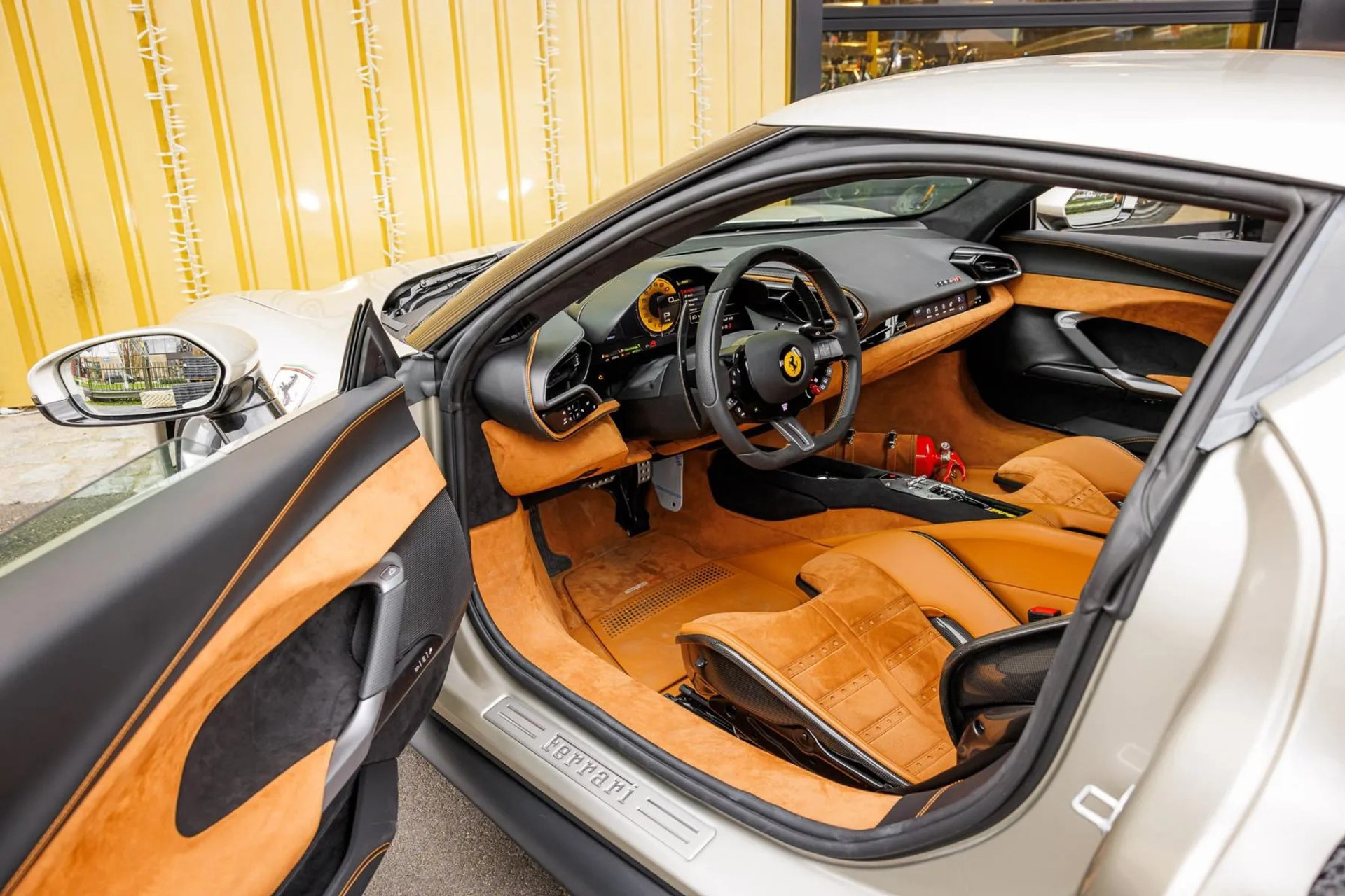 The pairing of Grigio Ingrid and Cuoio Alcantara results in an understated yet sophisticated look that perfectly suits the modern Ferrari design language.