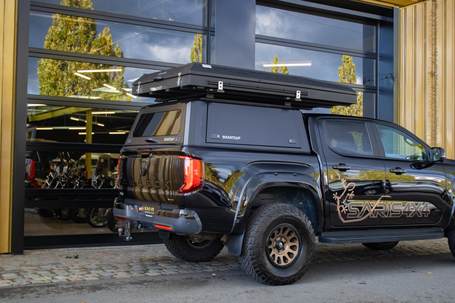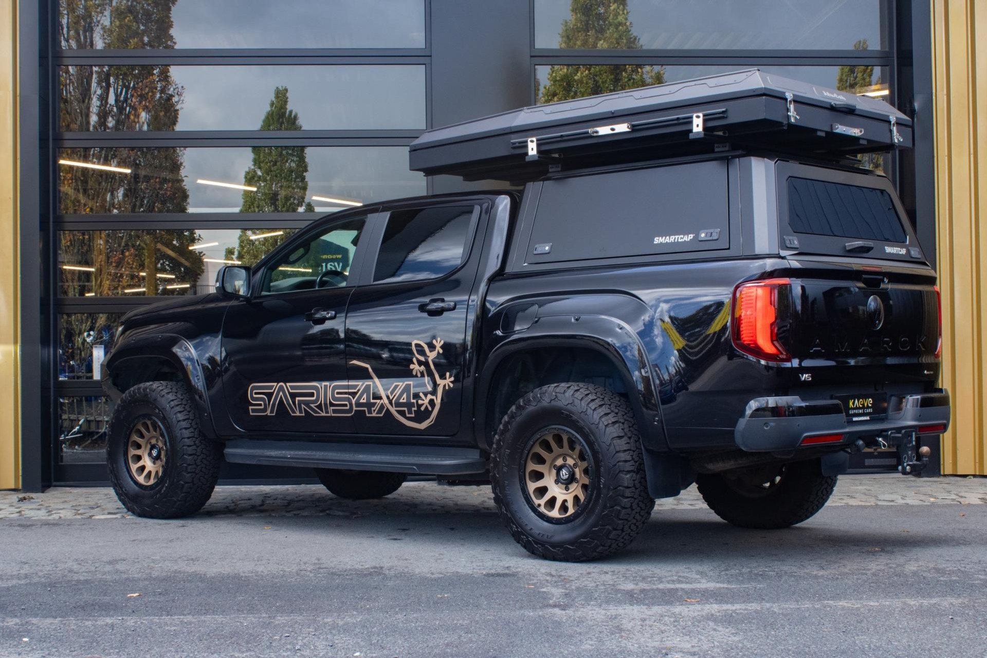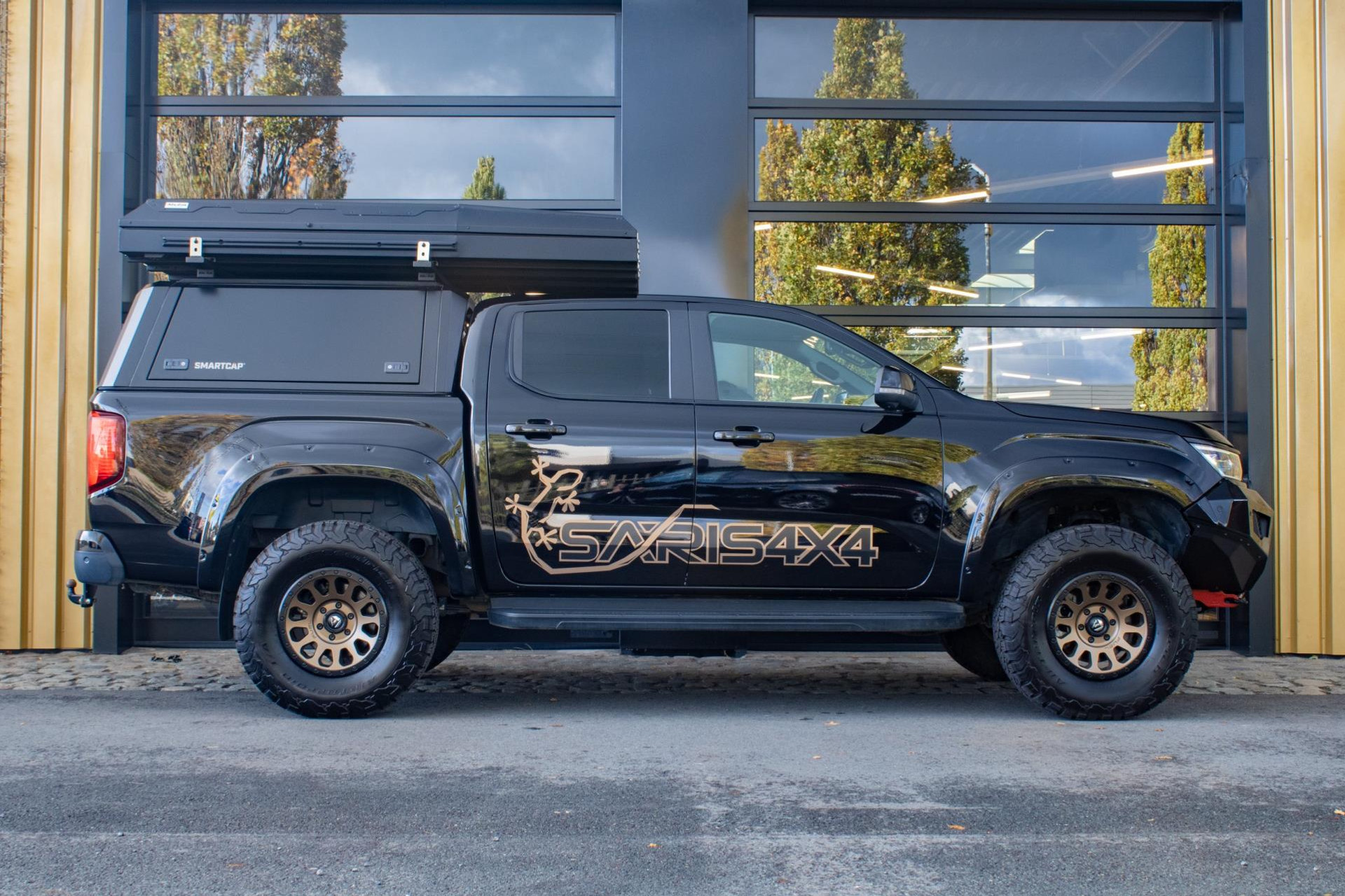 Dieser Volkswagen Amarok 3.0 TDI V6 aus dem Jahr 2023 ist das offizielle Vorführfahrzeug von Saris 4x4. Das Fahrzeug wurde neu bei einem offiziellen Volkswagen-Händler in Polen ausgeliefert und anschließend von Saris 4x4 selbst gekauft, professionell umgebaut und als Ausstellungsmodell auf Messen und Veranstaltungen eingesetzt. Es wurde ausschließlich als Vorführwagen genutzt und nie im Gelände gefahren. Daher befindet es sich technisch, optisch und hinsichtlich der Innenausstattung in neuwertigem Zustand.