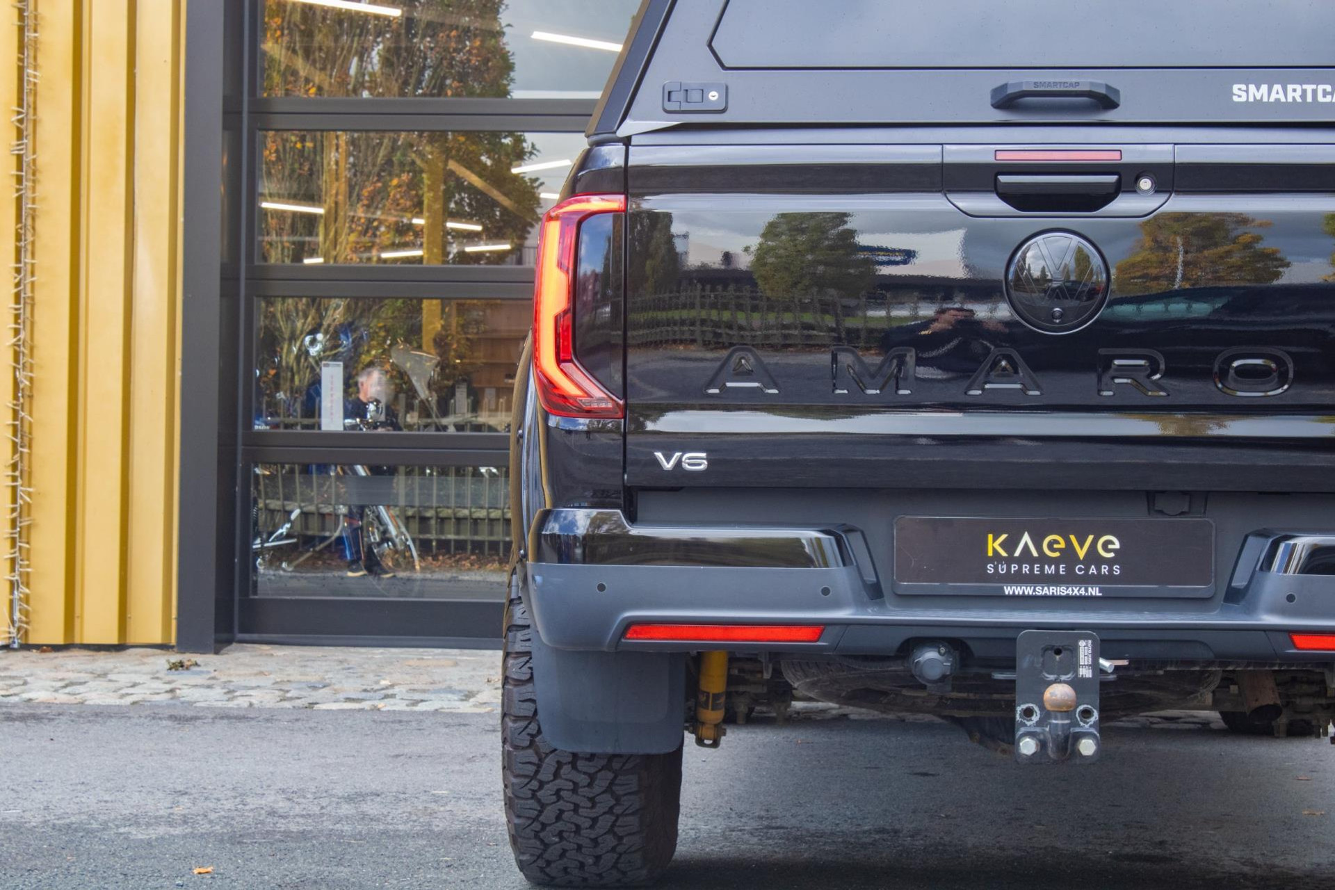 Deze Amarok is uitgevoerd in zwart metallic met half leder/Alcantara interieur. Aangedreven door de 3.0 TDI V6 met automatische transmissie en 4Motion vierwielaandrijving. Als nieuwste generatie Amarok beschikt hij over moderne uitrusting zoals een groot touchscreen infotainmentsysteem, digitaal instrumentenpaneel, 360° camera, keyless entry & start, adaptieve cruisecontrol, lane departure warning, elektrisch verstelbare stoelen en LED koplampen.