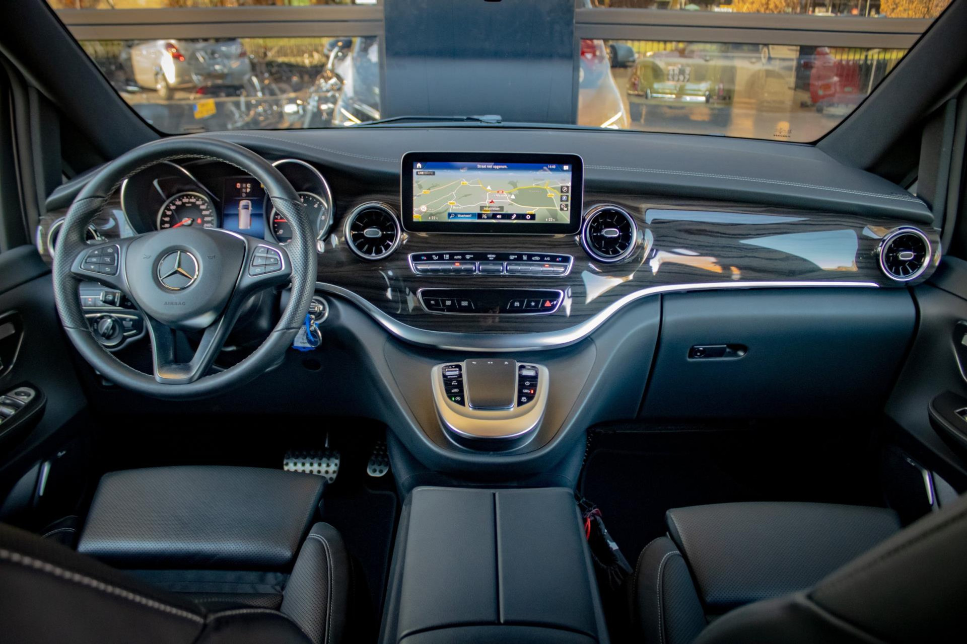 Aan opties geen gebrek: Burmester audio, 360° camera, elektrische schuifdeuren, Keyless Entry, full map navigatie, lane assist, dodehoekdetectie, LED-verlichting en een sportief AMG-exterieur. Een V-Klasse op dit niveau kom je zelden tegen.