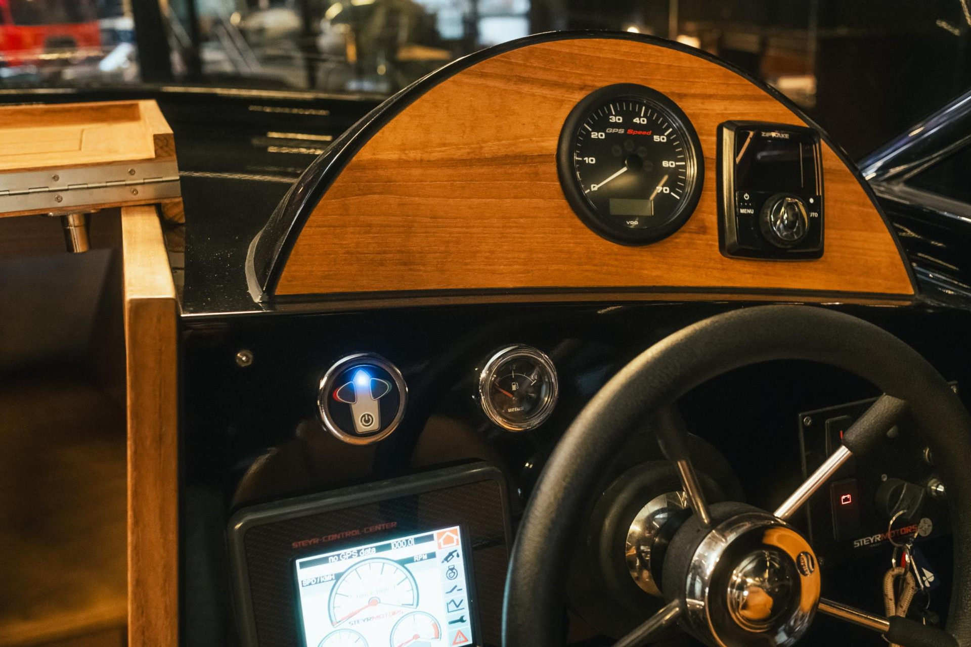 Onder de motorkap schuilt een krachtige Steyr 250 pk diesel binnenboordmotor met 6 cilinders, gecombineerd met een jet-aandrijving die acceleratie en wendbaarheid levert waar elke watersporter van droomt. De motor heeft slechts 44 draaiuren en wordt bestuurd via het Steyr Control Center, terwijl een geïntegreerde Zipwake trim-unit zorgt voor optimale stabiliteit en vaarcomfort. Elektrische start, stuurwielbesturing, enkel roer en een elektrische boegschroef maken manoeuvreren eenvoudig en intuïtief.