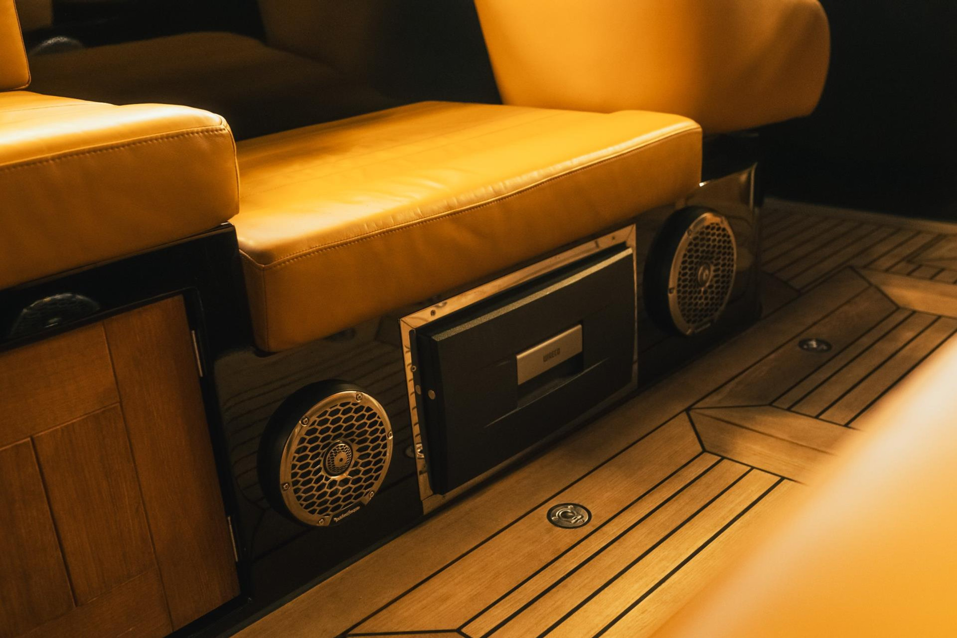 De Aurelia 780 is uitgerust met alle noodzakelijke instrumenten voor volledig vaarplezier: brandstoftankmeter, toerenteller, oliedrukmeter, temperatuurmeter, snelheidsmeter en trim-controlesysteem. Voor muziek en entertainment is er een premium Rockford Fosgate PMX-2 audio-installatie, inclusief Bluetooth en streamingfunctionaliteit.
